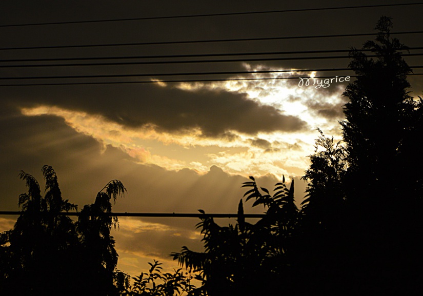 Ott van a fák között kivillanó fényben, a felhők között lemenő napsugárban.