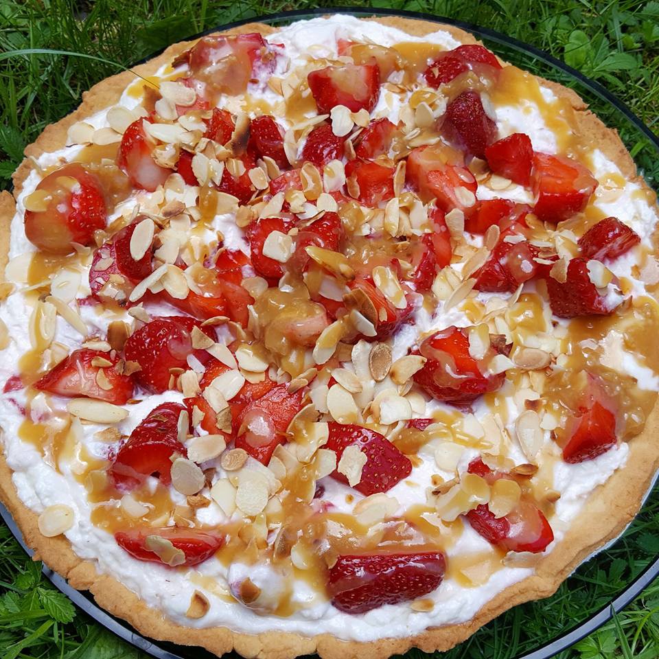 Epres- mascarponés pite karamellel és pirított mandulával: