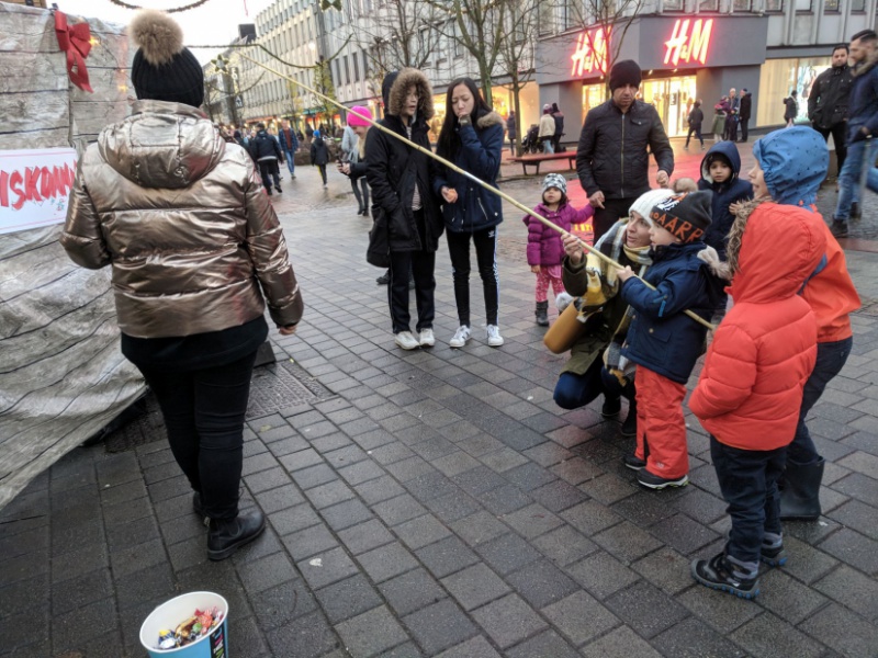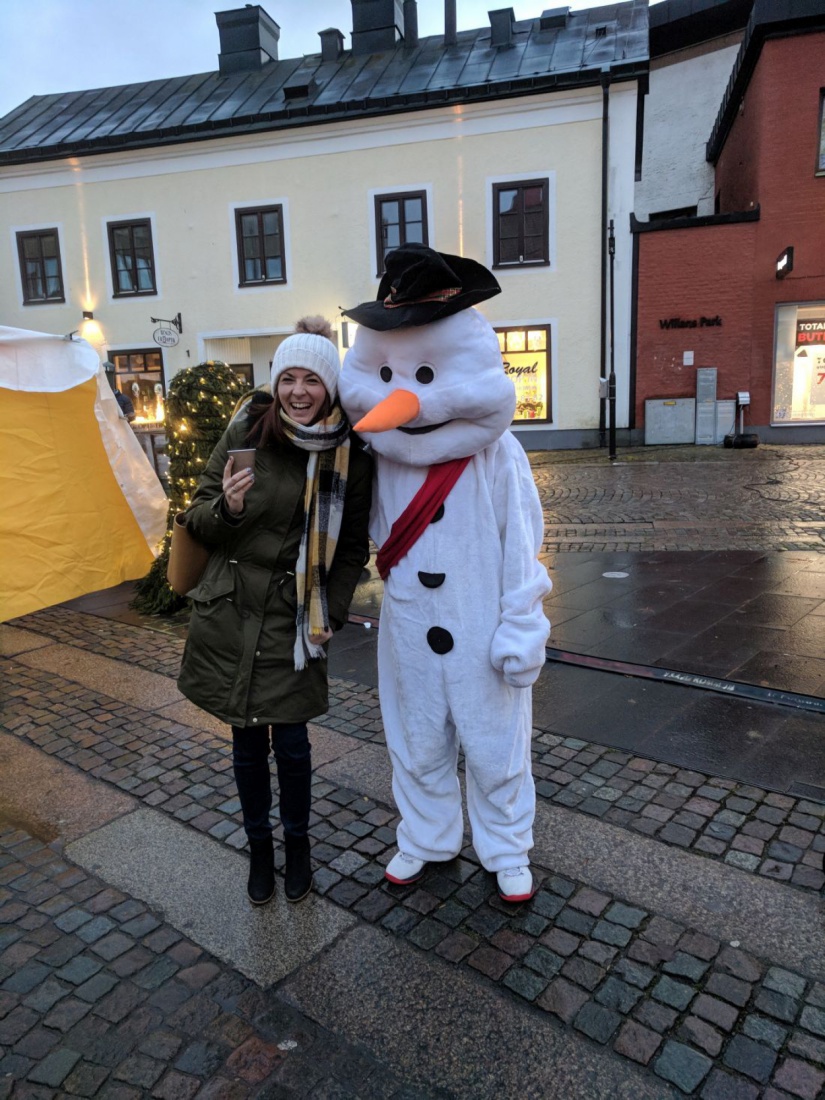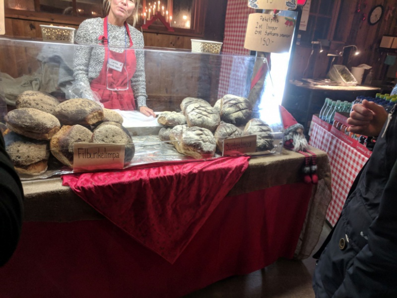 Rengeteg kézzel készített apróság várta ott a látogatókat. Megannyi élő fény, gyertya, karácsonyi dekoráció, Mikulás parádé. A kezeket itt is "glögg"- forralt bor melegítette fel, lehetett vásárolni finomságokat, sajtot, kolbászt, kenyeret, kilogramm szám édességet- "godis"-t.