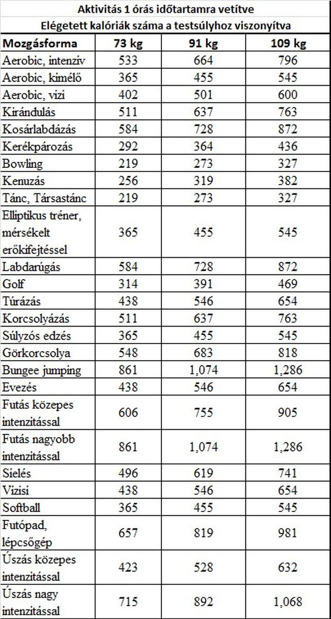 Mennyit égetünk egy edzés során? Ez főleg az időtartam-intenzitás-súly összefüggései alapján kiszámolható, vagy ha szánsz rá, pulzusmérő órával szuper pontos számokat kaphatunk. Minél nagyobb a súlyunk, annál több kalóriát égetünk egy edzés során, és úgy általában 1 nap során, hiszen nagyobb test, nehezebben mozgatható.Több energiához lesz szüksége így tehát egy szervezetnek, hogy mozgásban tartsa a testet, a kalóriaigénye is magasabb. Egy táblázat segítségével átnézheted mennyi az annyi, mégis milyen tartományokban mozgunk különböző tevékenységet végezve. Én pl. 52 kilómmal 60 perc zónázással, kb. 480-550 kalórát égetek.