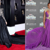 És ahogy emlegettem, van egy plusz jelenlévőnk, aki ugyan nem volt ott a Grammy díjátadón, de másnap hivatalos volt a ’Black Panther’ világpremierjére, amit Los Angelesben rendeztek meg. Ő nem más, mint Lupita Nyong’o a film egyik szereplője, aki egy lélegzetelállító, élénk lila custom made Atelier Versace estélyit viselt a lila szőnyegen, amiben szó szerint tündökölt a fotósok előtt. A ruhát drámai arany, fémes részletekkel és lila kövekkel díszítették fel, amitől még előkelőbb és emlékezetesebb lett a végeredmény. A színválasztás fantasztikus volt, a színésznő bőrszínével ez a gyönyörű lila árnyalat remek összhangot alkotott, de a legjobban a szoknya lágy esése tetszett, ami szinte repült utána, mozgás közben pedig remekül tudott érvényesülni.