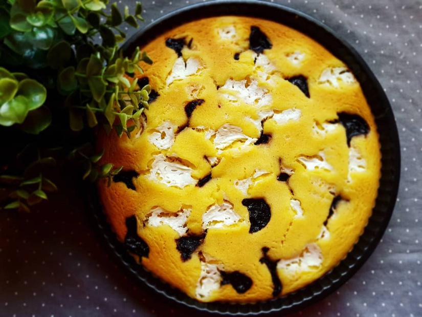 Egyszerűen összekevertem az alapanyagokat, és vártam míg a kukorica liszt egy kicsit megszívja magát. Egy pite formába öntöttem, de bátran tehető tepsibe is. Kiolajaztam (kókuszolaj) és beleöntöttem a tésztát. A tetejét gazdagon szilvalekvárral és kefirrel csepegtettem meg. 200 fokos sütőben sütöttem szép arany színűre.