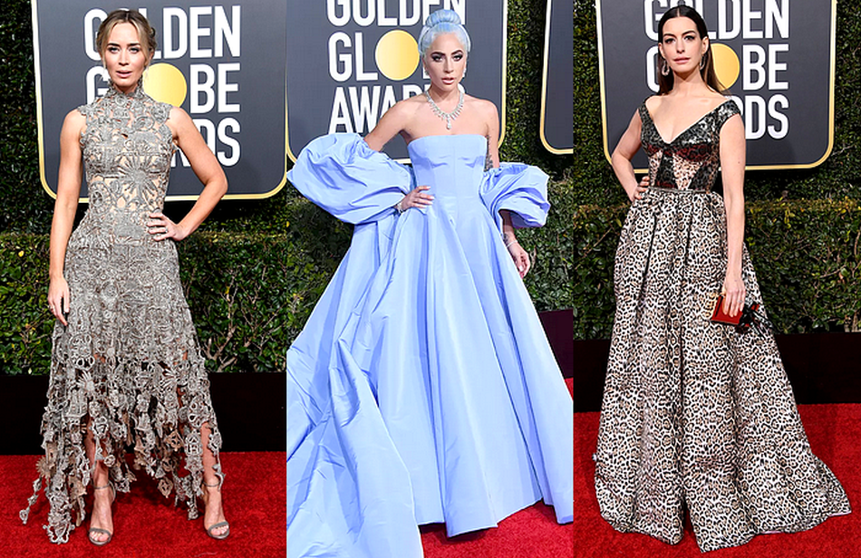 Lady Gaga jött, látott és ismét győzött, aki most nem is az alteragójaként, hanem Stefanie Germanotta-ként tündökölt a vörös szőnyegen, ahol lélegzetelállítóan nézett ki. A „Csillag születik” 32 éves színésznője, aki díjjal távozott a gáláról egy kéknefelejcsszínű, bővebb kialakítású, hosszú uszállyal és ejtett, pufi ujjakkal kiegészített Valentino Couture estélyit viselt a 2018-as őszi/téli kollekcióból, akárcsak Gemma Chan. A szabás, a szín és a kialakítás mind fantasztikus volt, az utóbbi 3 évben sikerült nagyon megszeretnem a megjelenéseit, mivel elkezdett tényleg változatosan és ízlésesen öltözködni. Egyértelmű, hogy az eseményen nem volt párja ennek a darabnak, mindenkin túl tett, de igazából tőle nem is vártam volna kevesebbet, pontosan olyan drámai ruhát választott ki a stylistjával, amilyet szerettem volna, sőt még az elvárásaimat is felül tudta múlni, ezek után pedig alig várom, hogy láthassam az Oscar-ra kiválasztott szettjét. Ráadásul annak ellenére, hogy rengeteg anyagot használtak fel ehhez a tényleg bő ruhához, az alacsony énekesnőből lett színésznő mégsem veszett el benne, mert hatalmas magabiztossággal viselte az egészet. Sőt az is látható, hogy ezt a kék színvilágot és témát mennyire komolyan vette, mivel még a haja is ilyen árnyalatban pompázott.