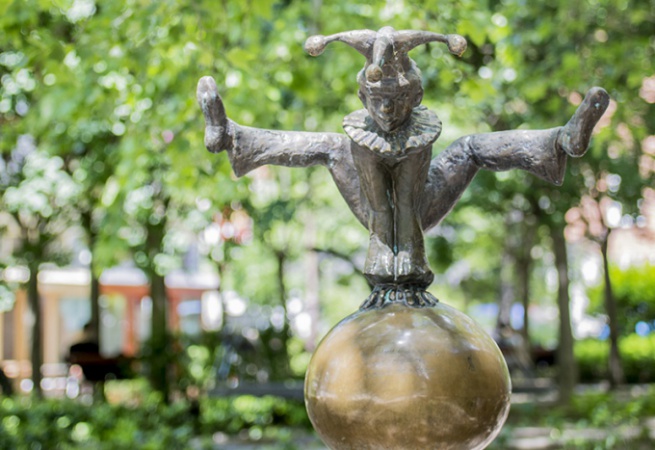 Szigorú előélete volt a belvárosi Európa parknak, amely évtizedeken át a Latinca tér névre hallgatott. Északra tőle magasodott a szakszervezeti székház, délre állt a megyei tanácsház, a téren pedig Latinca Sándor 1919-es kormányzótanácsi biztos szobra, Konyorcsik János 1961. november 7-én leleplezett alkotása gondoskodott a tér romantikusnak csak erős túlzással nevezhető hangulatáról. A kommunista terror helyi vezérlő szellemének szobrát – a Tanácsköztársaság és a korai Kádár-kor közötti folyamatosság egyik bizonyítékaként – az a Szirmai Jenő (1921–2019) avatta fel, aki Rákosi Mátyás és Kádár János diktatórikus rendszerének volt a pártfunkcionáriusa, és 1956 végétől 1962-ig, tehát a forradalom utáni megtorlás legkeményebb időszakában Somogy megyei első titkárként irányította az állampárt hatalmi apparátusát.
