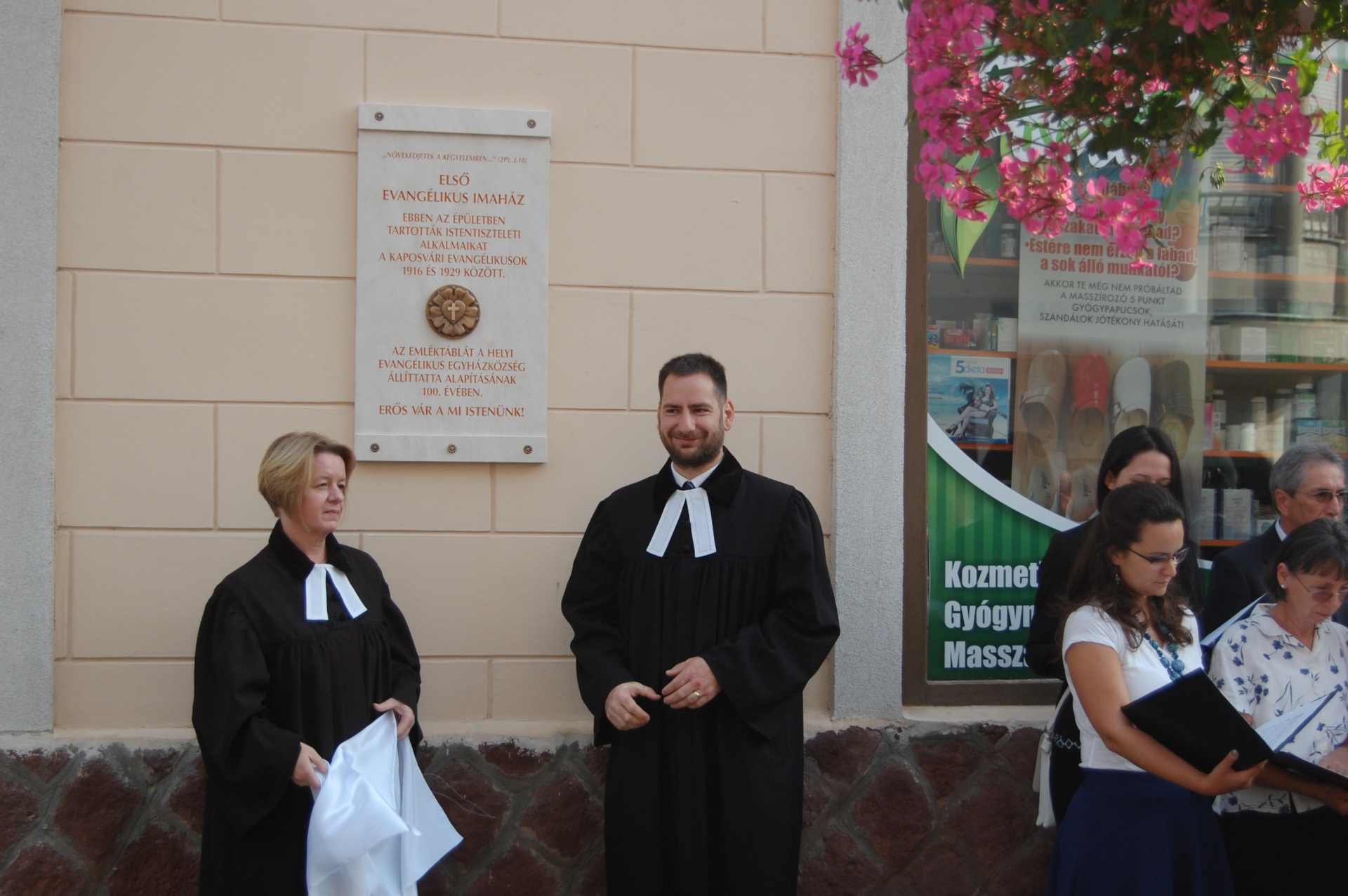Kőszeghyné Raczkó Zsuzsanna esperes és Pongrácz Máté kaposvári lelkész 2016. szeptember 11-én emléktáblát avatott a Teleki utcai volt tűzoltószertár falán. Azért éppen ott, mert a kaposvári evangélikusok ebben az épületben tartották istentiszteleteiket 1916 és 1929 között. (Az emléktábla domborműve Gera Katalin szobrászművész alkotása.)