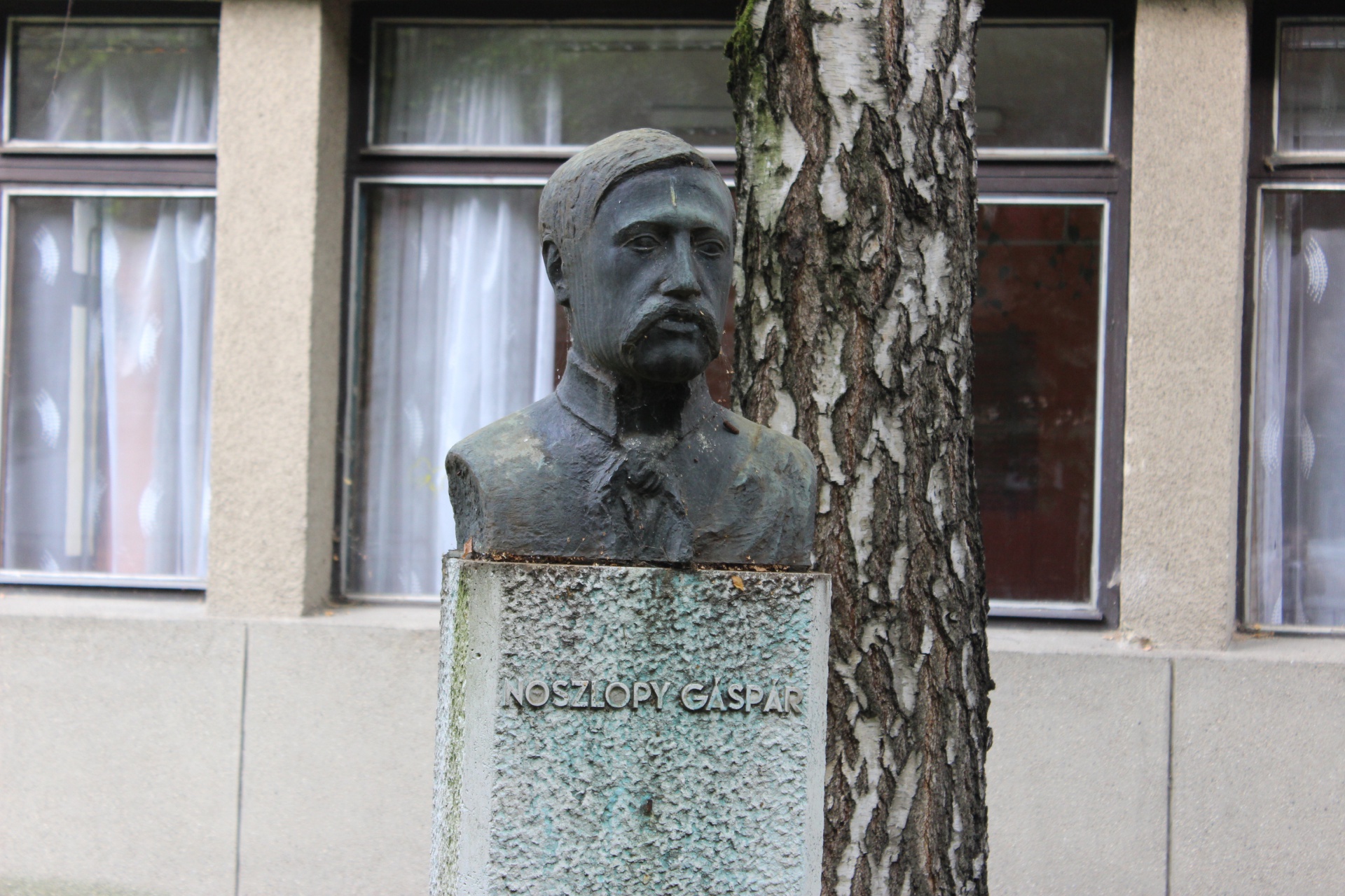 A kaposvári közgazdasági szakközépiskola Lenin (eredeti és a rendszerváltozás utáni nevén is Szent Imre) utcai épülete előtt 1975. március 14-én leplezték le Noszlopy Gáspár mellszobrát, Janzer Frigyes éremművész és szobrász alkotását. Ünnepi beszédet dr. Kanyar József levéltár-igazgató mondott.