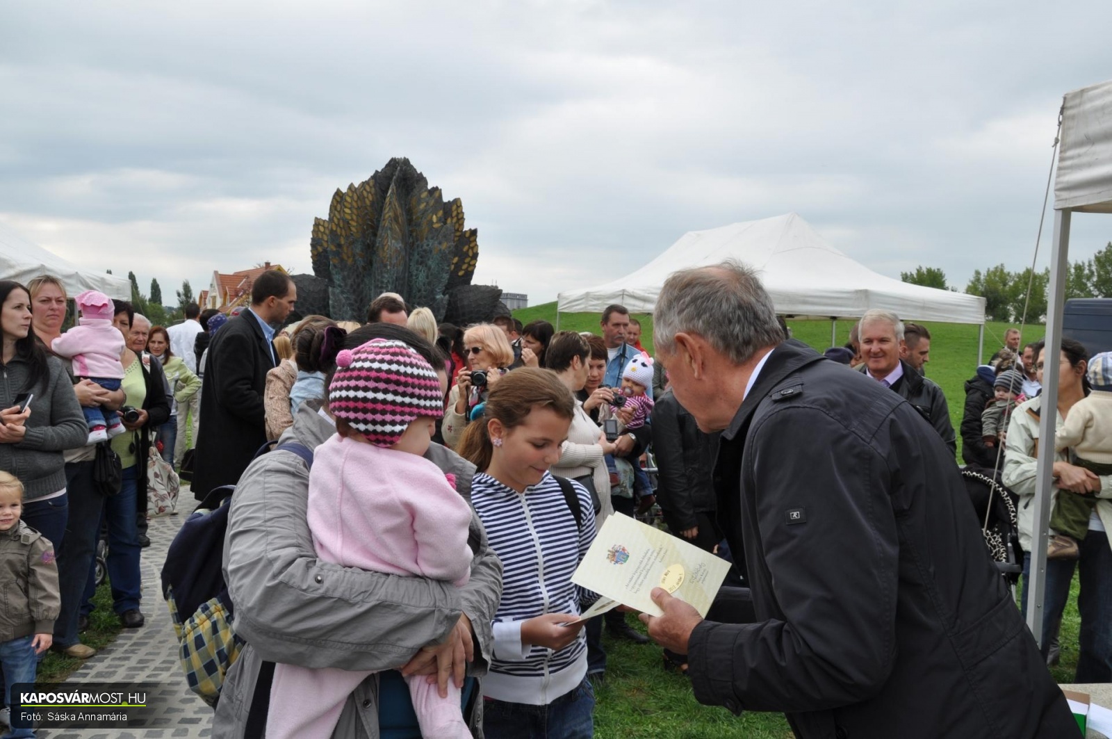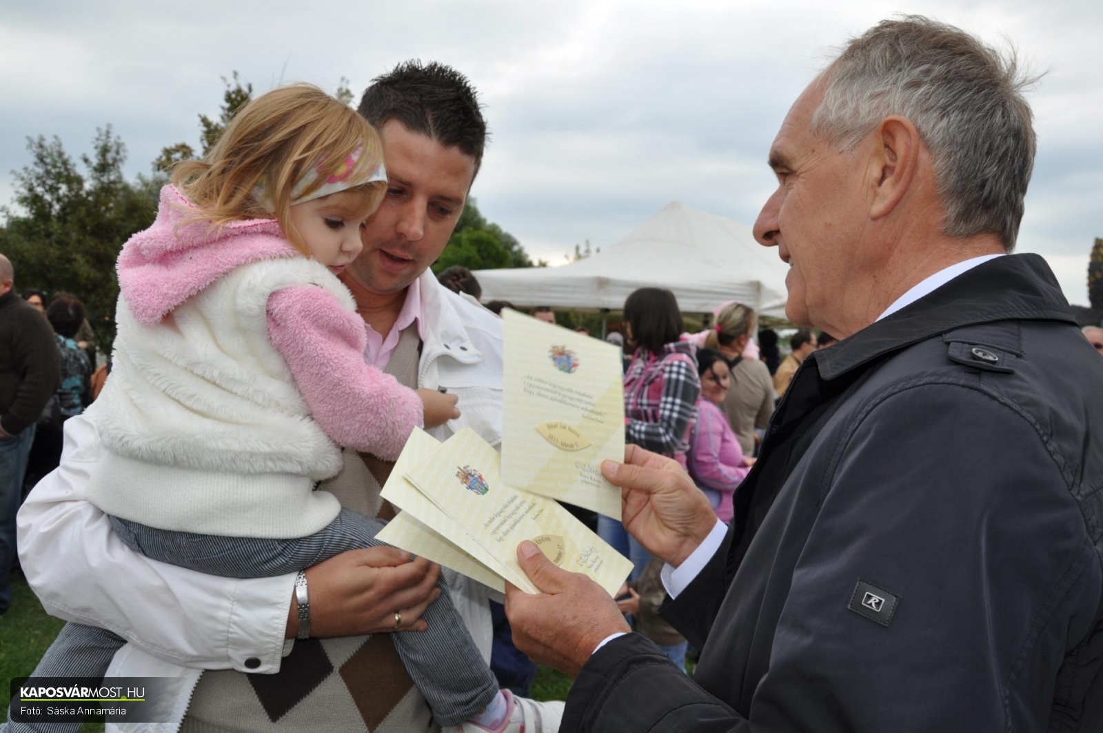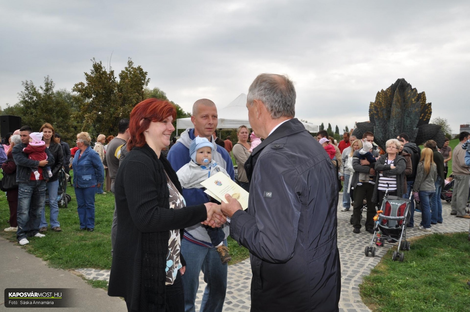 Újabb kilencven levéllel, rajta kisgyerekek nevével gazdagodott Kaposvár második életfája. A bronzlevelek másolatait és az emléklapot a hagyományoknak megfelelően Szita Károly adta át a kicsiknek és szüleiknek.