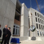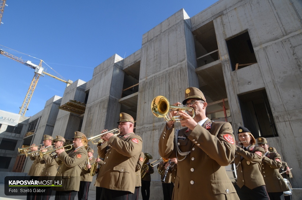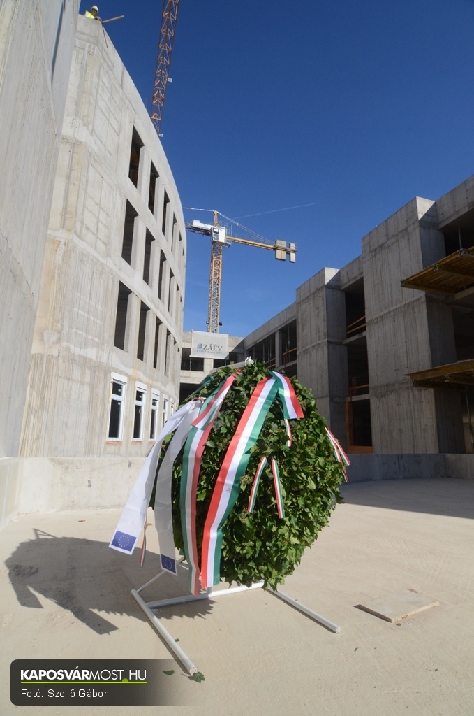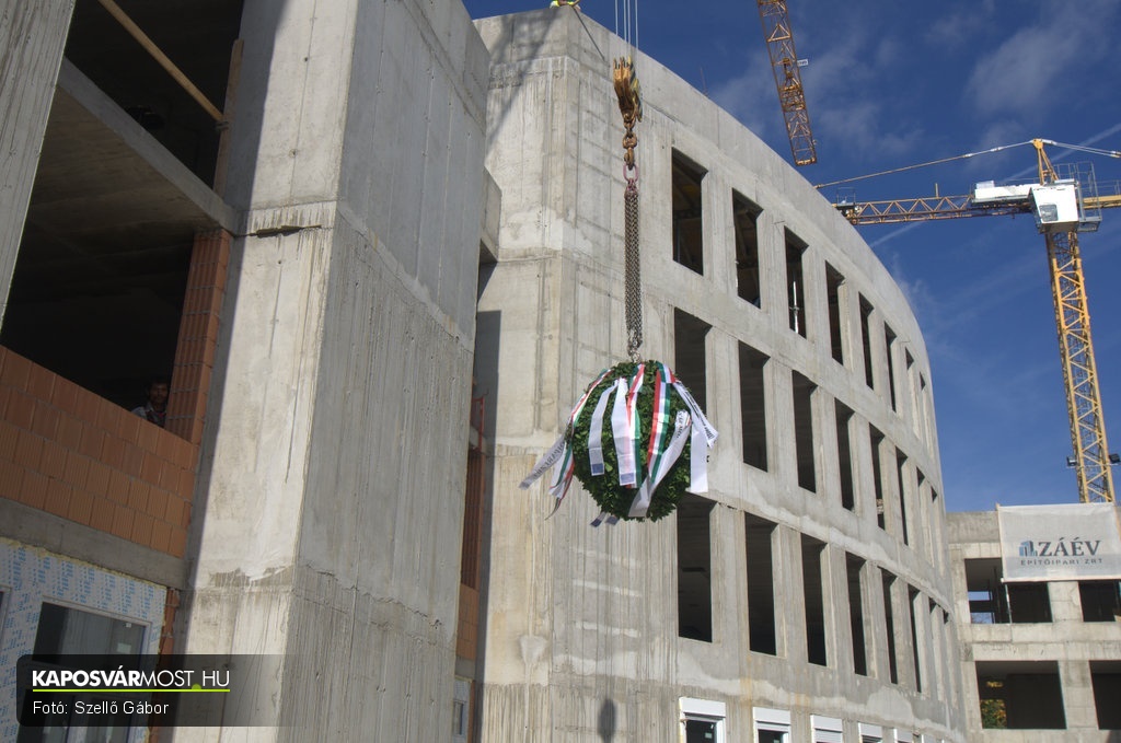 Bokrétaünnep a kórházban A Somogy Megyei Kaposi Mór Oktató Kórház Pólus beruházásának 2. üteme elérkezett az építkezés legmagasabb pontjához. 2013. 10. 22., kedd, 00:00, 44 db fotó Fotós: Szellő Gábor KMOK bokrétaünnep építkezés Pólus projekt