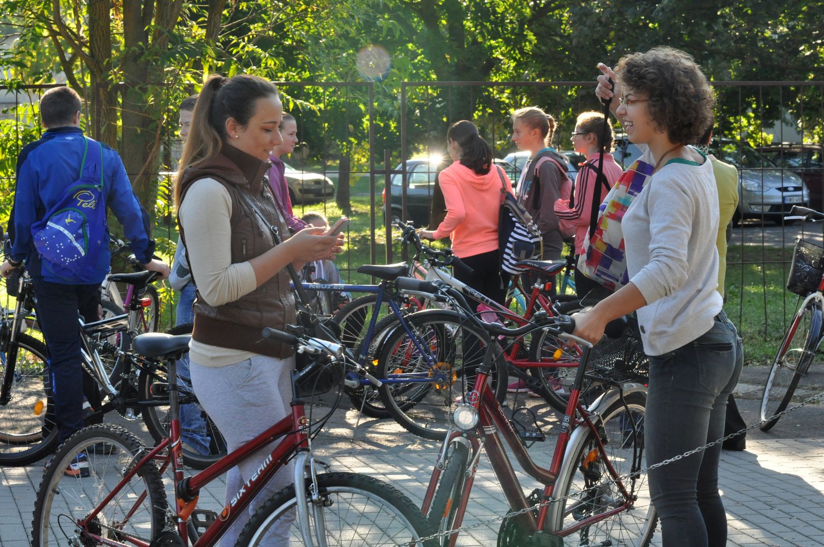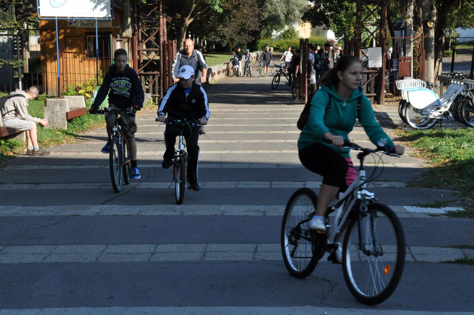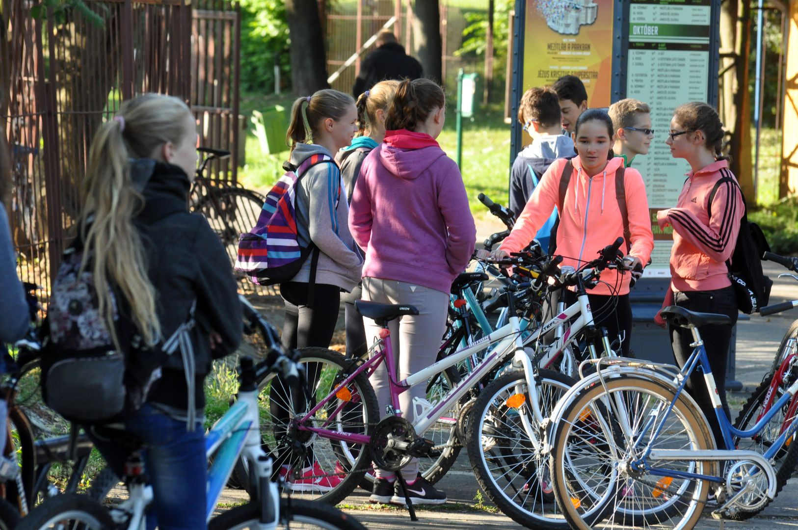 Bringázó kaposvári iskolásokkal telt meg a Sportcsarnok udvara kedden. A fiatalok az Európai Autómentes Nap alkalmából kibicikliztek a Desedára, ahol elméleti és gyakorlati vetélkedőkön vettek részt.