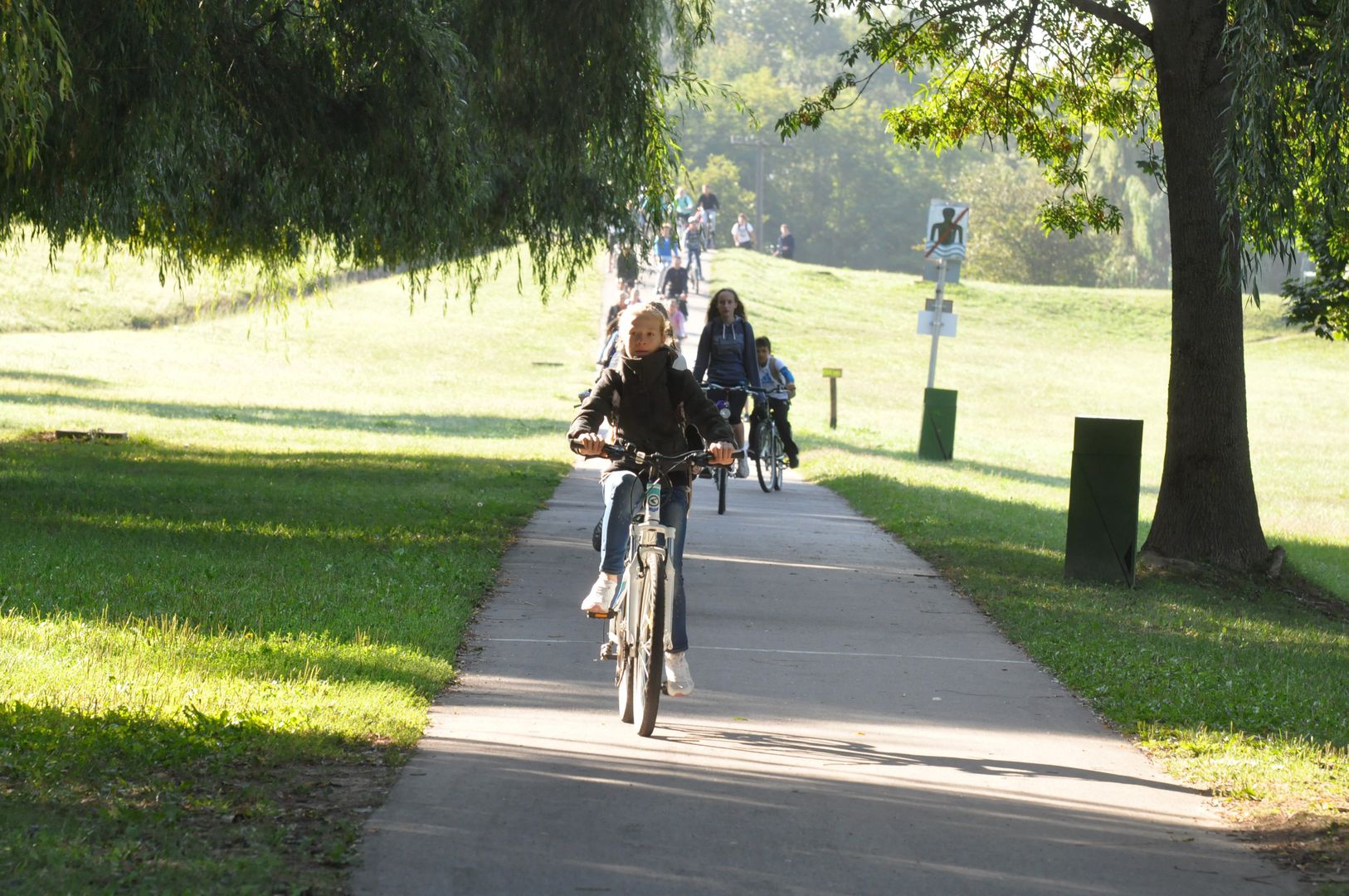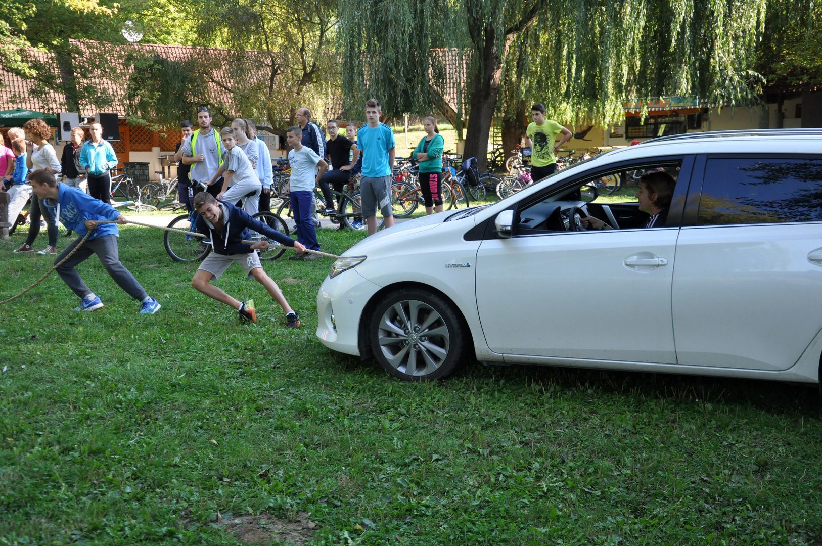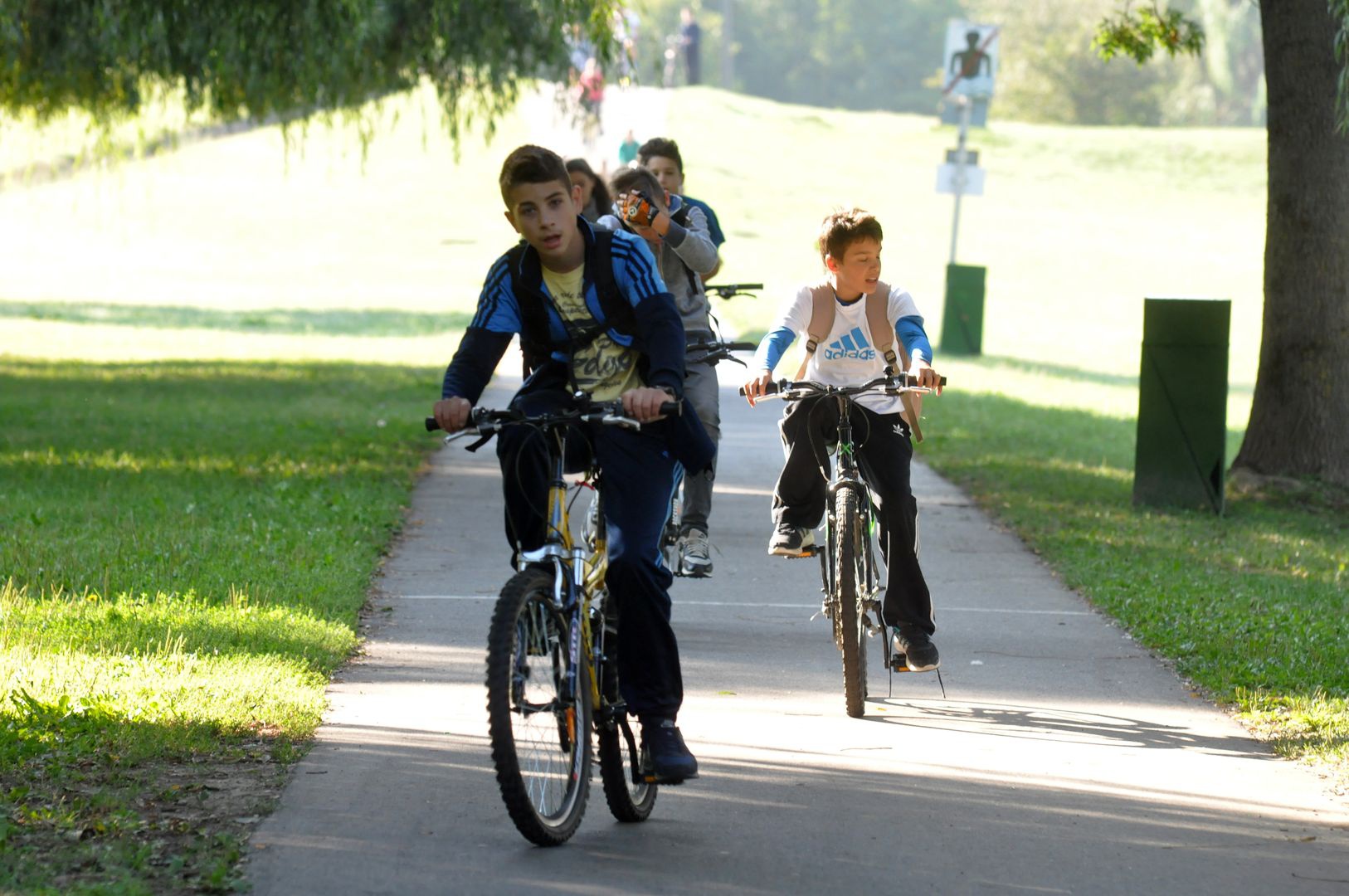 Bringázó kaposvári iskolásokkal telt meg a Sportcsarnok udvara kedden. A fiatalok az Európai Autómentes Nap alkalmából kibicikliztek a Desedára, ahol elméleti és gyakorlati vetélkedőkön vettek részt.