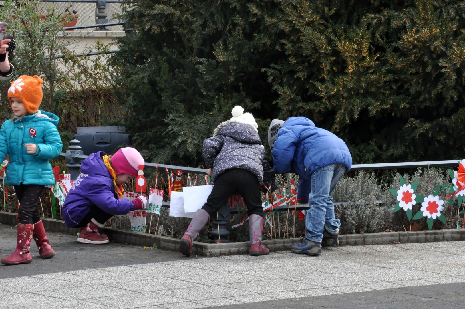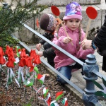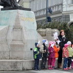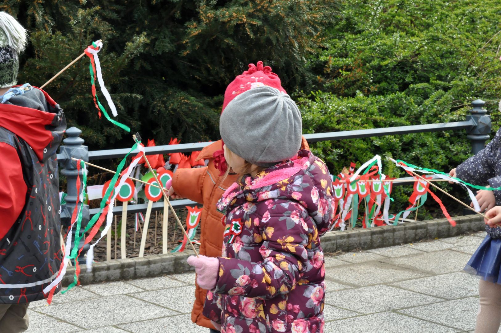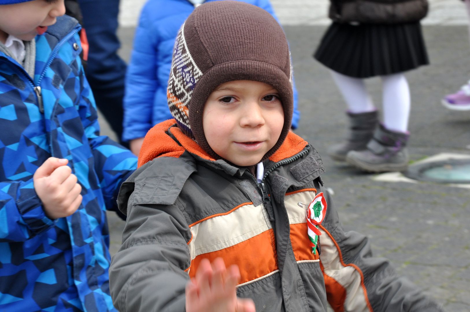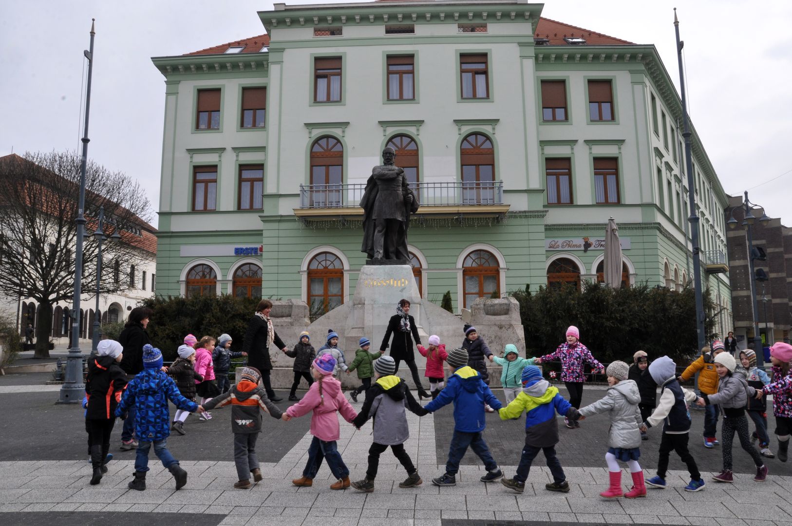 Pénteken délelőtt a város óvodásai - mint ahogy minden évben - saját készítésű zászlóikat és szélforgóikat helyezték el a szabadságharchoz kötődő személyek szobrainál, így Kossuth Lajos szobránál is. Egyes csoportok énekeltek és táncoltak is.