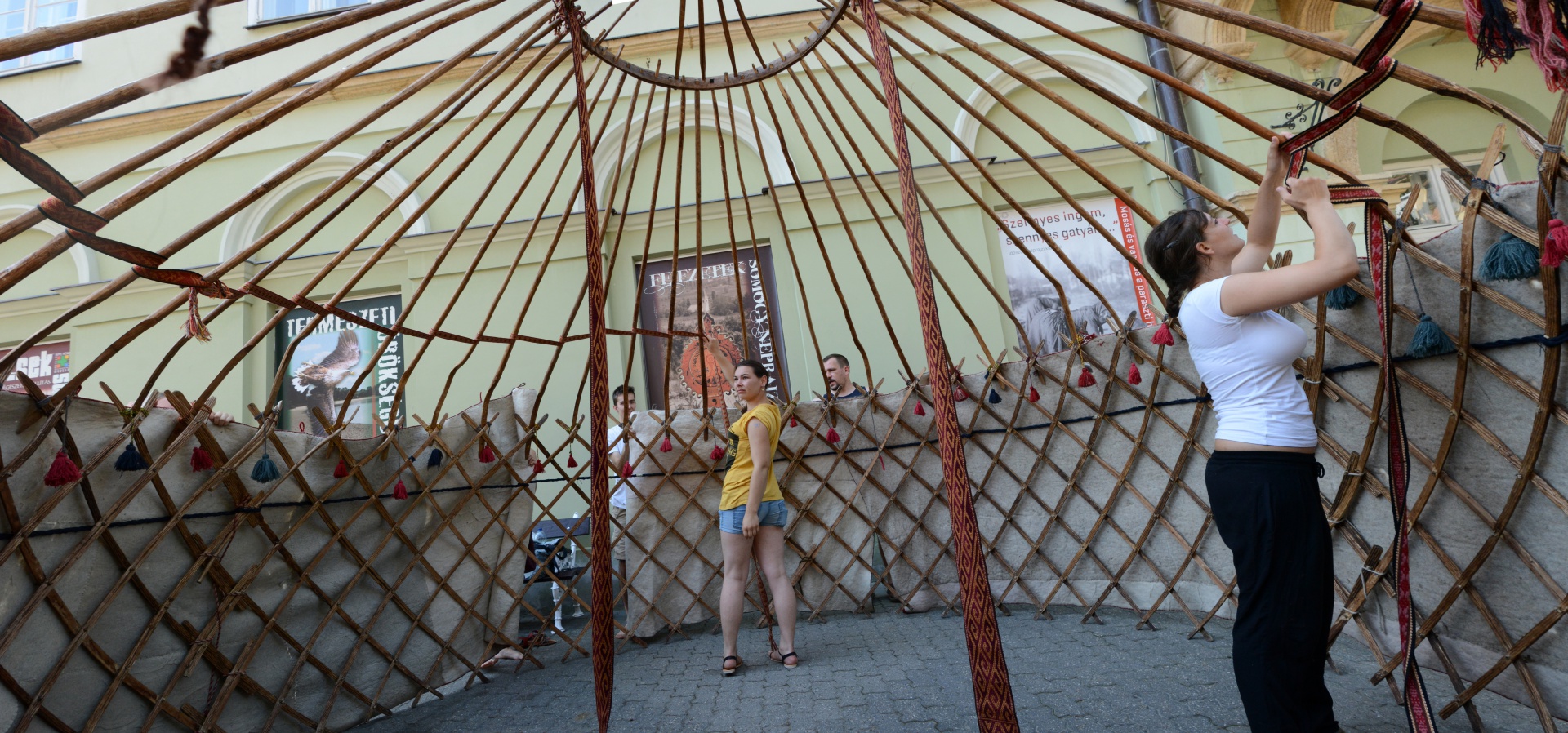 Jurtát építettek a Fő utcán a Megyeháza előtt, ezáltal jelezve, hogy holnap lesz a Múzeum Éjszakája. A honfoglalás előtti magyarok praktikus lakóépületét a Nádudvari Népi Kézműves Szakiskola építette.