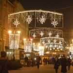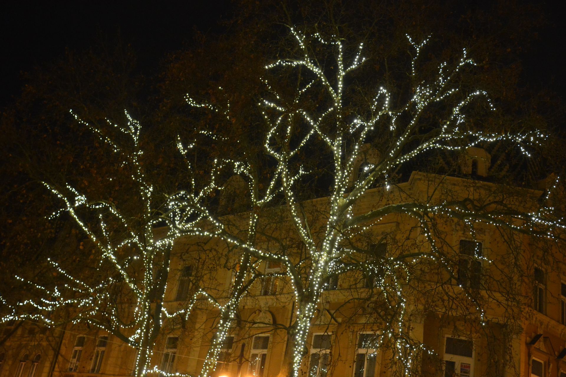 Az utolsó percig bizakodtunk: hátha fehér karácsony lesz. Éppen ezért csak most mentünk le fényképezőgéppel a sétálóutcára és a Kossuth térre, hogy idén is megörökítsük a fényben úszó belvárost, de sajnos most is csak szürke tájban sikerült.