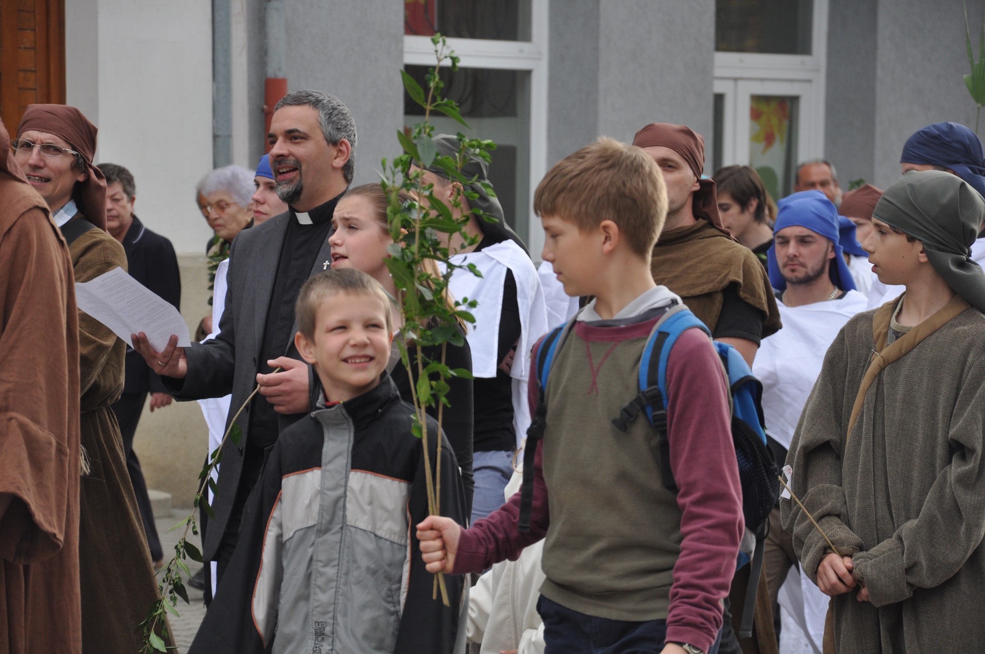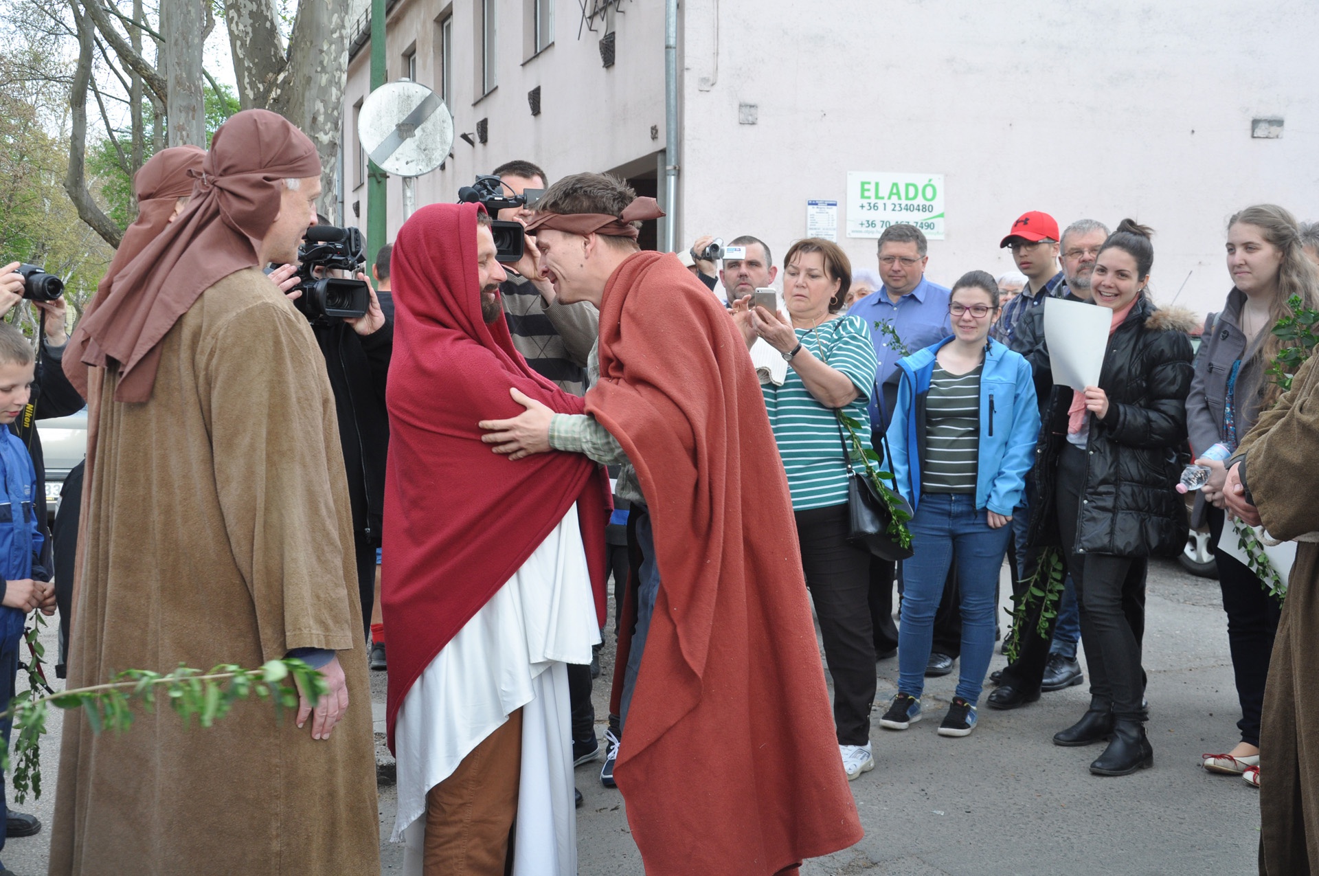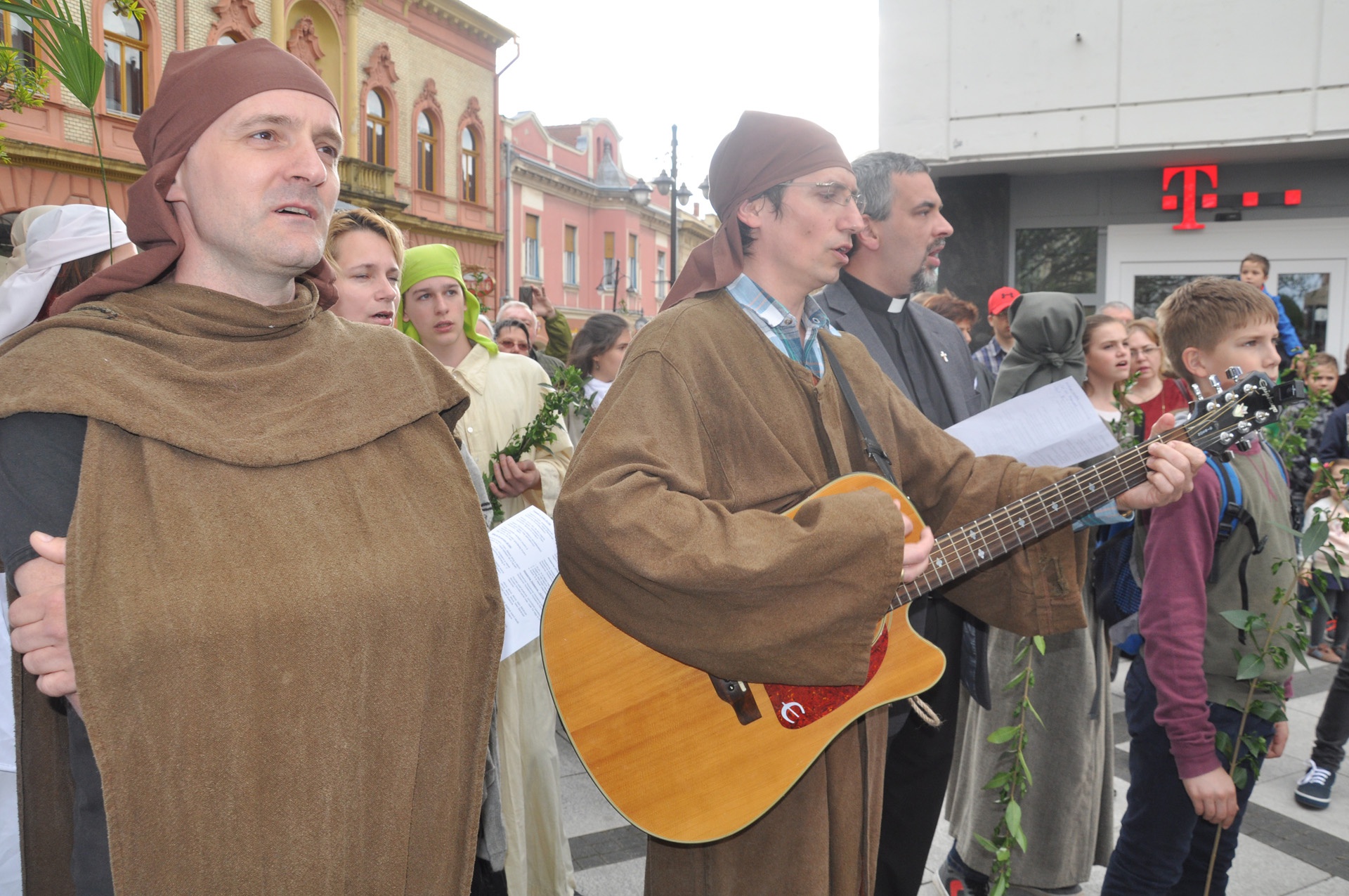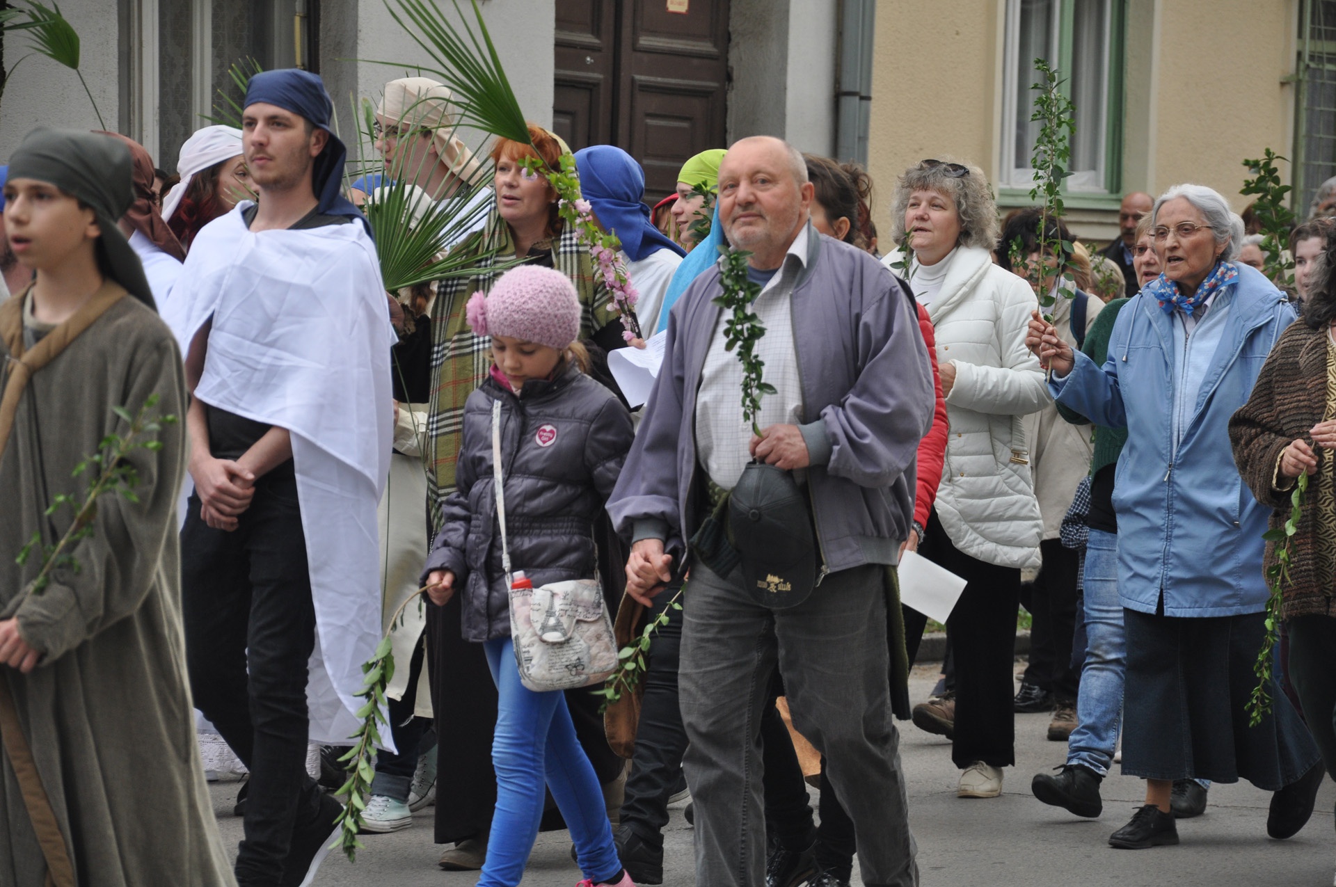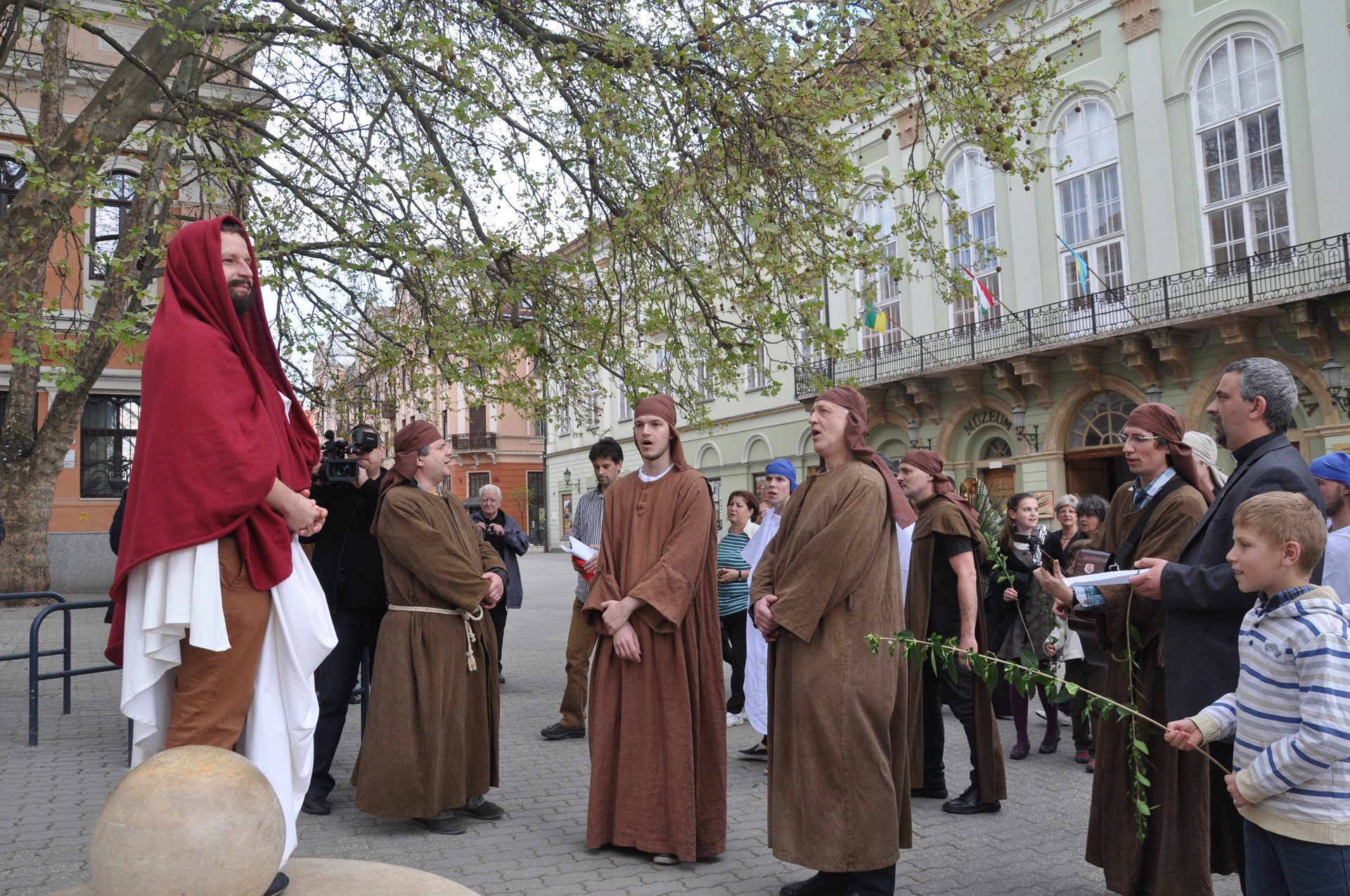 A Csiky Gergely Színház színészei és a Jézus Szíve Plébánia önkéntesei egy látványos menetet szerveztek a mai napon Kaposváron. A " Jézus bevonulása Jeruzsálembe" ünnepi felvonuláshoz sokan csatlakoztak, nagyszerű hangulatot varázsolva ezzel a város szívében Virágvasárnap alkalmából.