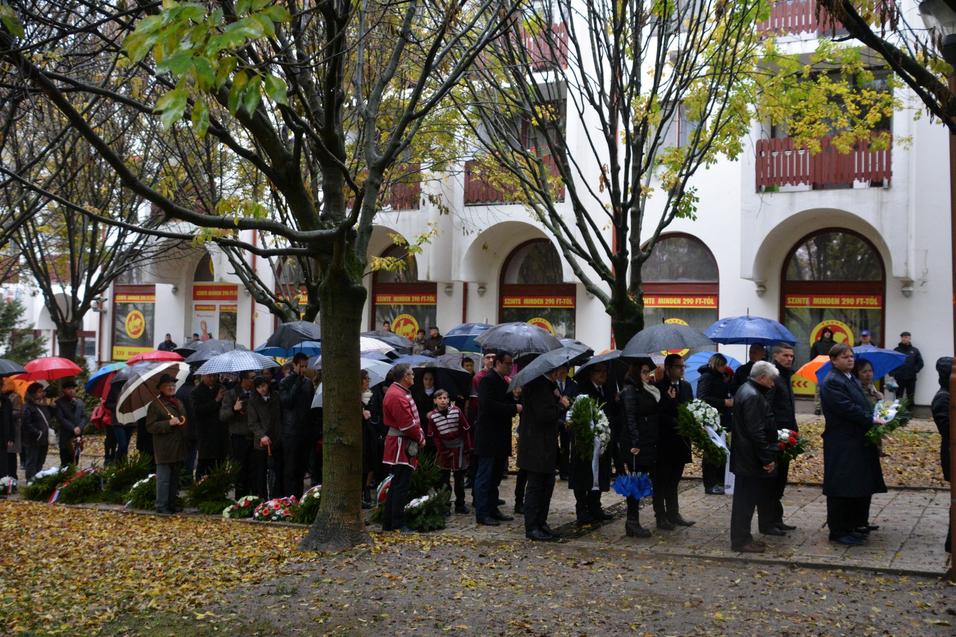 A Kossuth téren ünnepélyes zászlófelvonással, a Nagy Imre és a Szabadság angyala szobroknál pedig ünnepi műsorral és koszorúzással emlékeztek 1956 hősei. A hideg időjárás és az eső ellenére több kaposvári is részt vett az ünnepségeken.