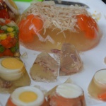 Kocsonyafesztiválra várták a kaposváriakat a Nagypiacra szombat délelőtt. A tojásos kocsonyától a disznó kocsonyáig, a csirkés kocsonyán át minden volt, ami szem és szájnak ingere, de még kocsonyának valót is lehetett vásárolni.
