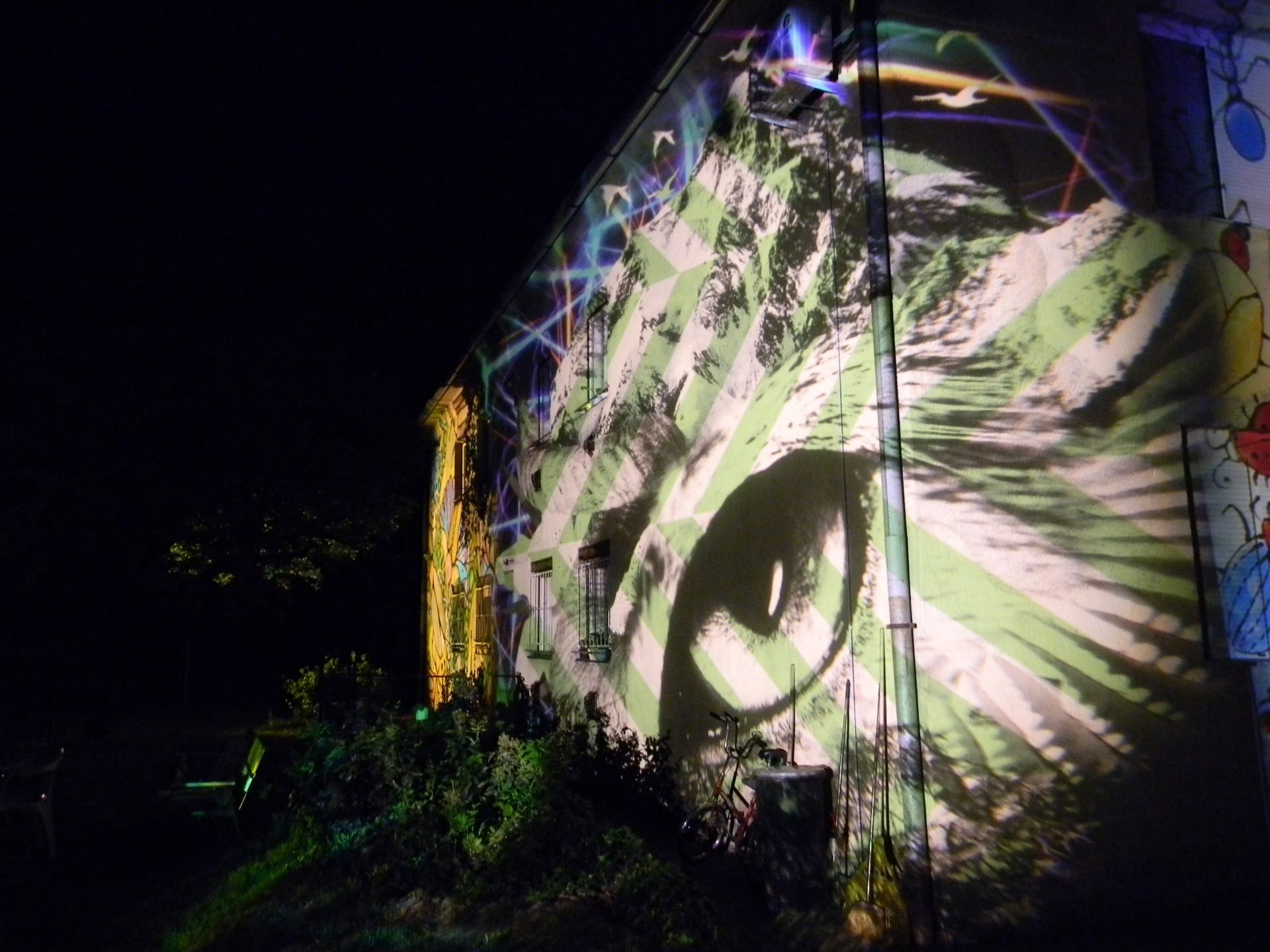Péntek este fénybe borult a Szántó u. 15. szám alatti társasház. A Fényhangár Audiovizuális Csoport, a lakók kérésére színes képekkel „festette be” a lakóházat, amely így, egy estére megújult, színpompás külsőt kapott.