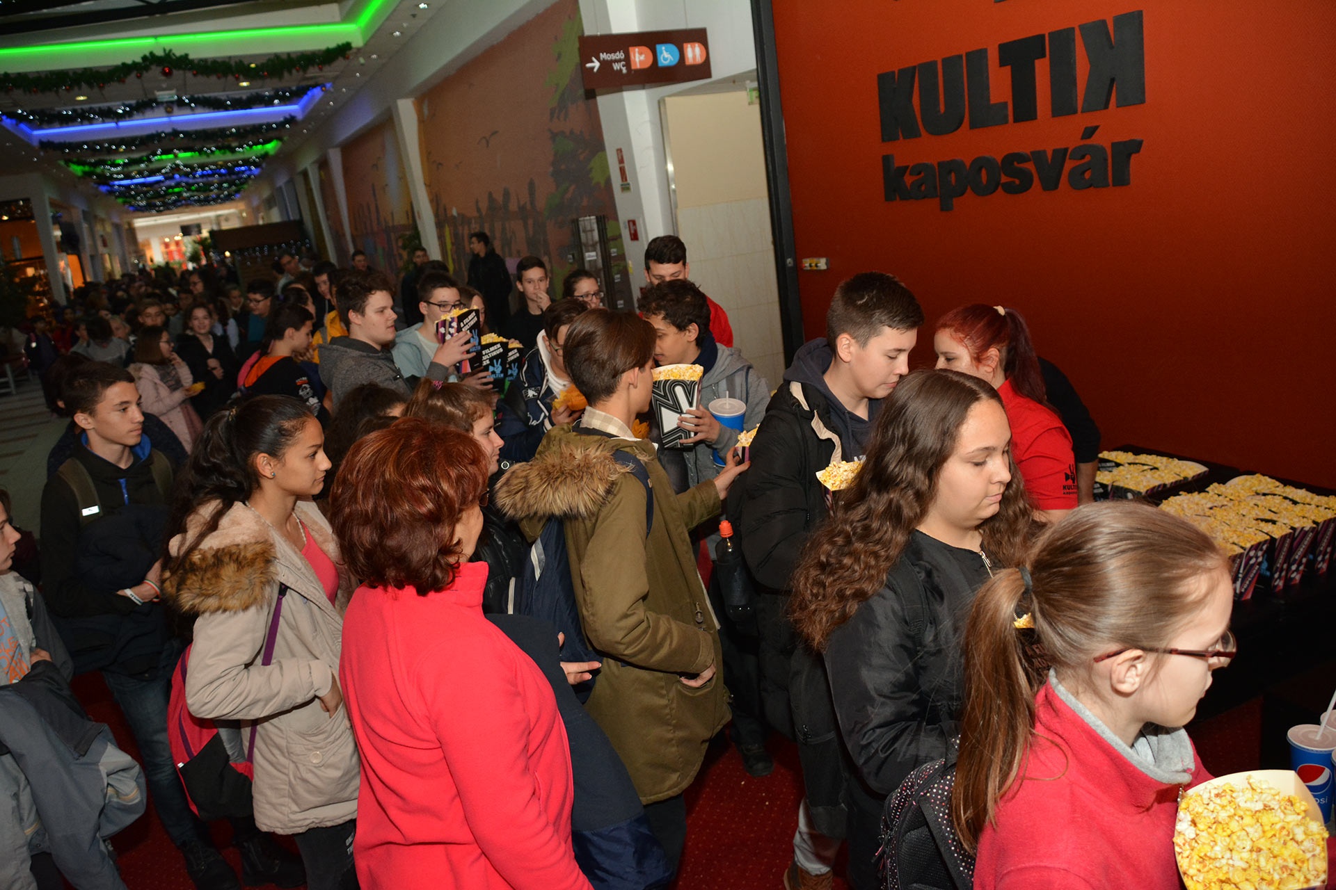 Kétszázötven általános iskolást látott vendégül hétfőn délután a kaposvári Kultik mozi a plázában. Voltak, akik életükben most először ültek be egy moziba.