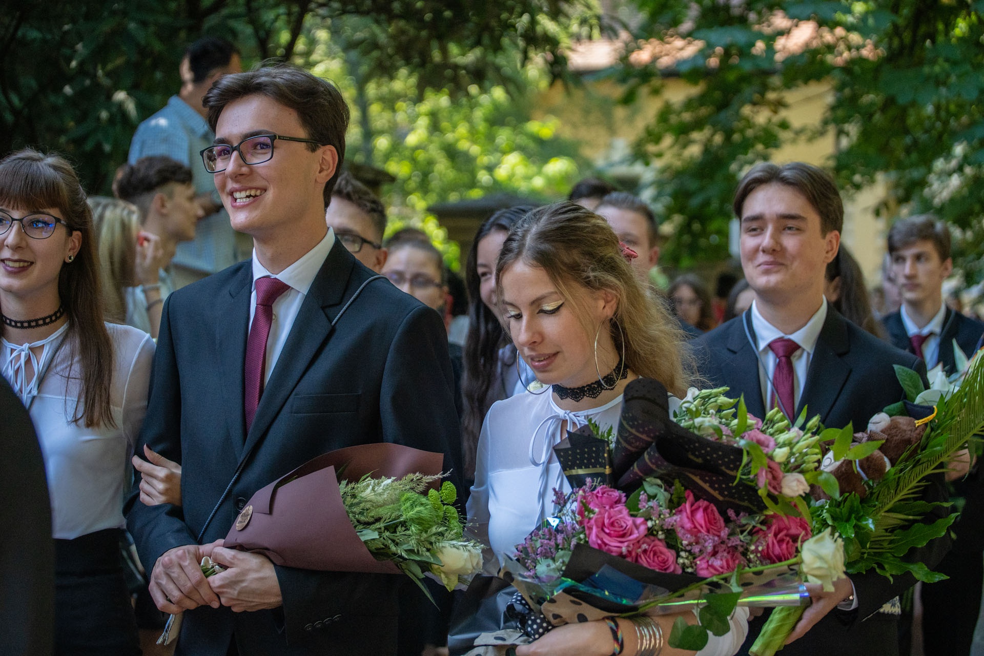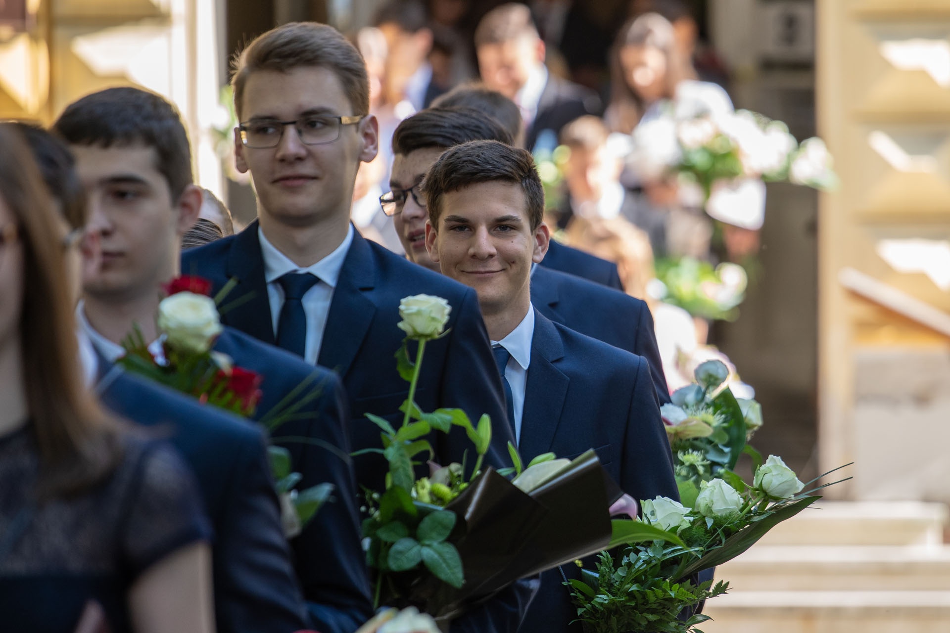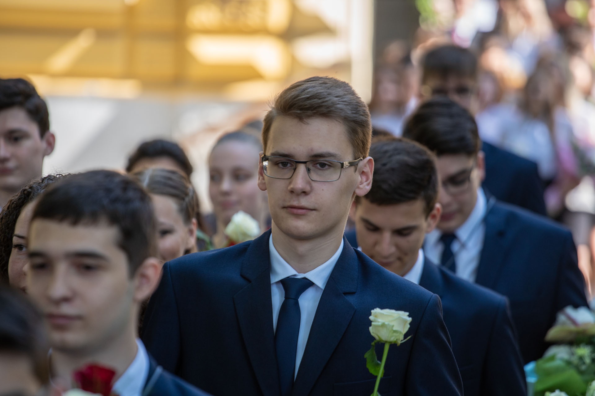 Pénteken délelőtt a Kaposvári Táncsics Mihály Gimnázium végzős osztályai az iskola Bajcsy-Zsilinszky utca felőli kapuján kilépve, a Szent Imre utcán át a gimnázium hátsó udvarára ballagtak, ahol a szülők részvételével búcsúzhattak az alma matertől.