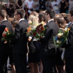 A rendkívüli időjárásra való tekintettel az ünnepség előtt a tűzoltóság vízzel hűtötte le az udvar aszfaltját.