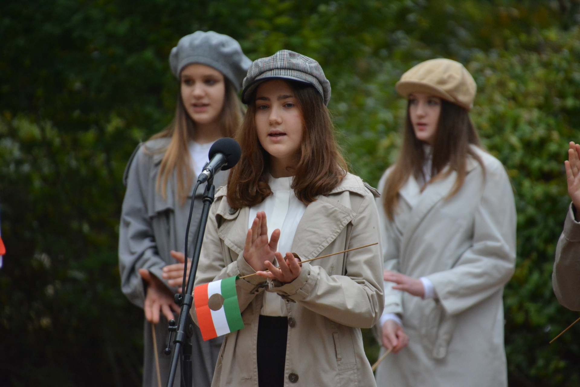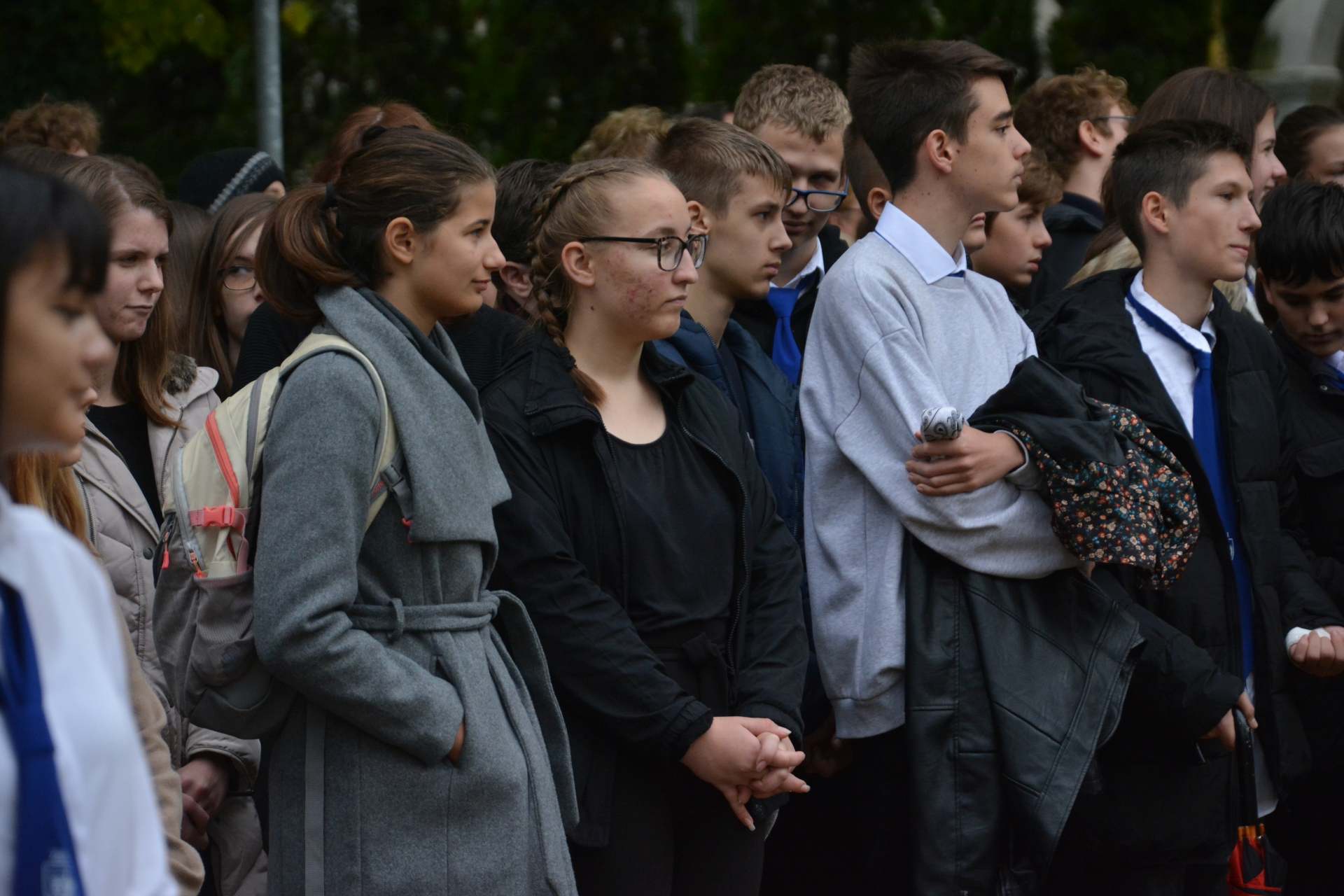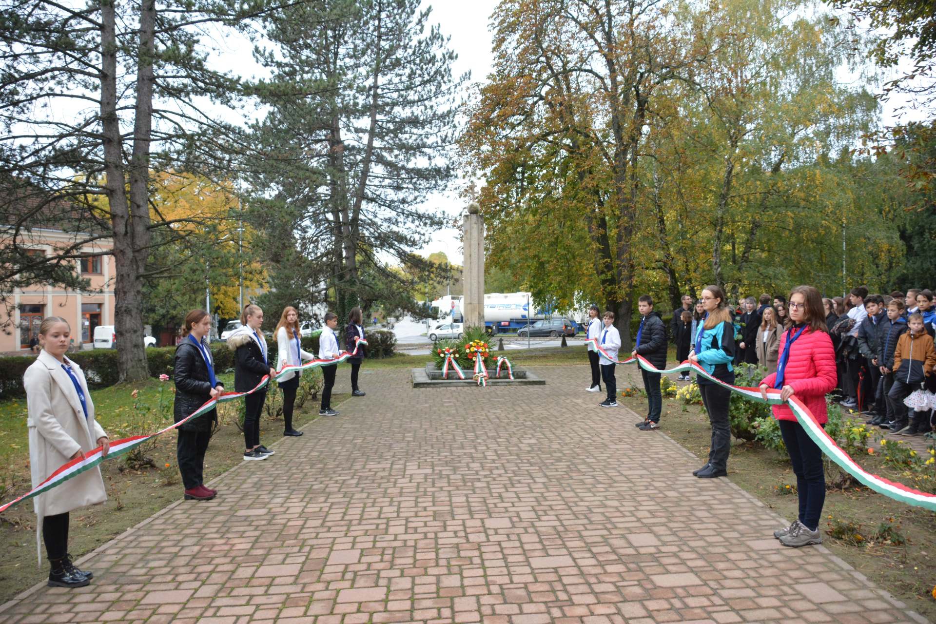 Az október 23-ai eseményekre emlékezve adta elő emlékműsorát a Zrínyi Ilona Általános Iskola péntek délelőtt a kaposvári Hősök temploma előtt.