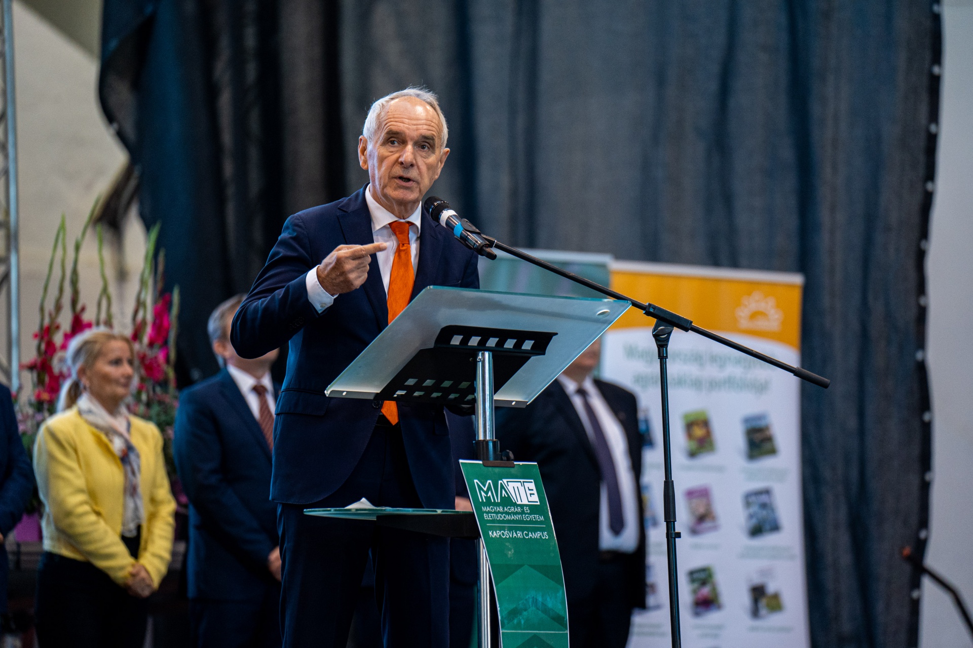 A MATE rektora beszédében kiemelte, hogy idén 15. alkalommal rendezik meg a KÁN Egyetemi napokat, ami annak idején állattenyésztési kiállításként indult, majd az egyetem létrejöttével bővült ki egyetemi napokká. „A fesztivál nemcsak az új, korszerű eljárásokat, módszereket prezentálja, hanem középpontba helyezi az emberi erőforrást is” – tette hozzá. Emlékeztetett, hogy olyan időket élünk, amikor a mezőgazdaság egyre inkább divatba jön. „Téves úton jár az az ország, amelyik a nemzetközi kereskedelemre, a globális ellátási láncokra alapozza gazdaságát” – hangsúlyozta. Elmondta azt is, hogy ahhoz, hogy ezeket a célokat el lehessen érni, a legjobb tudással rendelkező szakemberekre van szükség. „Mikor létrehoztuk a MATE-t, olyan agrárfókuszú felsőoktatási intézmény megalapítását tűztük ki célul, ami alapoz a vidéki bázisokra, mint amilyen Kaposvár is.” Megjegyezte, szintet léptek azzal, hogy összekapcsolták a szakképzést és a felsőoktatást. Ennek köszönhetően a pénteki nyitó napon több mint 600 szakiskolás diák vesz részt a rendezvényen, az egész nap során pedig több mint 1000 diákot üdvözölhetnek. Zárásként hozzátette, a KÁN célja, hogy összehozza a fiatalokat, a szakmát és a térségben élő embereket.
