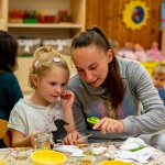 A délután első felében mindenki a saját csoportjában kézműveskedhetett, elkészíthette –lámpását, egyéb libás alkotását – játékát, dekorációját.