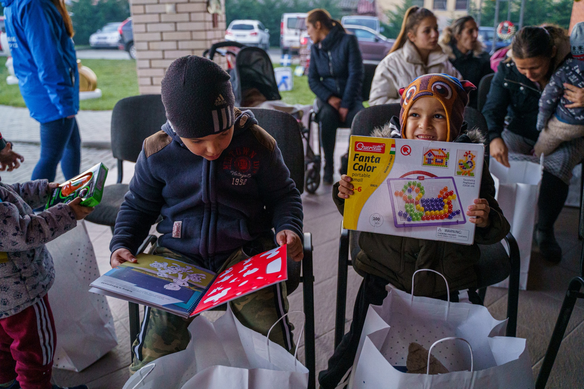 A Kossuth téri Adománykuckóban leadott ajándékokat kedden délután adta át a gyerekeknek Borhi Zsombor alpolgármester és Bacza Barbara, a segélyszervezet kaposvári Biztos Kezdet Gyerekházának vezetője.