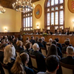 Ezt követően Szita Károly visszaemlékezett a tavalyi tanácskozásra, mikor is arról számolt be köszöntőjében, hogy egy különleges év kezdődött Kaposváron, hiszen 150 éve, 1873-ban lett rendezett tanácsú, polgári irányítású város. Az alkalomból kitüntetéseket és emlékzászlókat adományozott a város hírnevét öregbítő, megbecsült polgárok és intézmények részére. Hozzátette, hogy a Somogy Vármegyei Ügyvédi Kamara is régen beírta magát a város történelmébe, majd kifejtette, hogy a kaposvári ügyvédeknek meghatározó szerepe volt a polgárosodás kialakulásában.