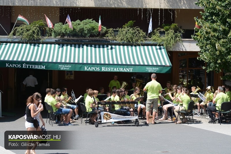 Csak úgy ropták a vendégek! Fúvószenekar szolgáltatta a talpalávalót a Kapos előtt, a vendégek meg szemmel láthatóan jól érezte magát. Gilicze Tamás fotói. 2014. 06. 29., vasárnap, 00:00, 17 db fotó Fotós: Gilicze Tamás Kaposvár násznép fúvós