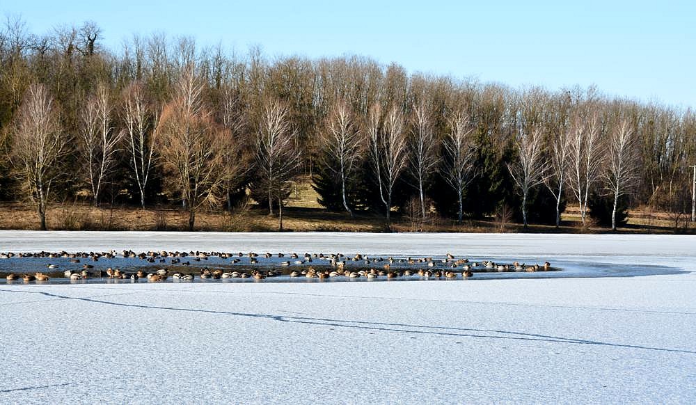 Több száz vadkacsa a jeges Petörke-tóban