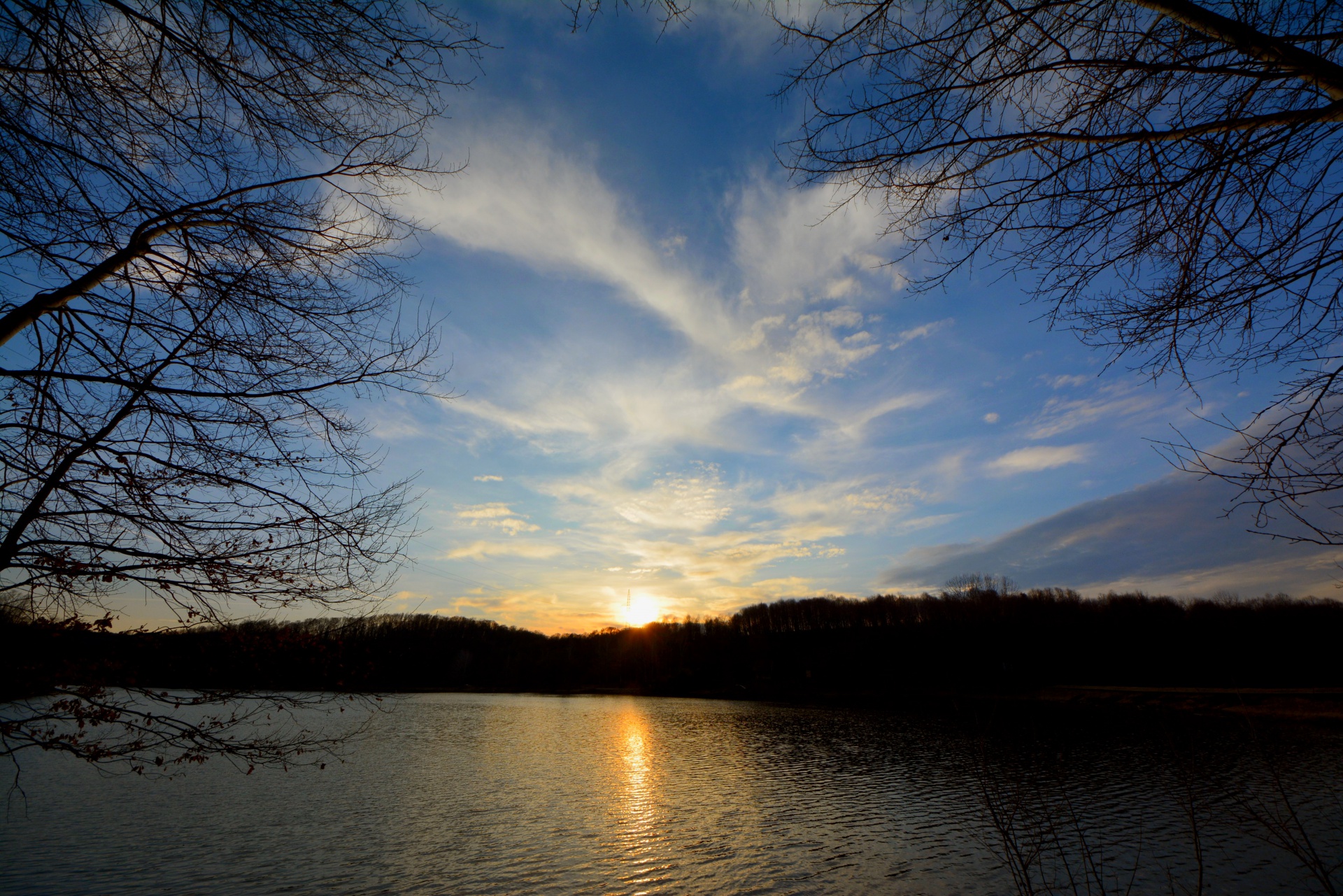 Naplemente és ágaskodó fák a Töröcskei tónál