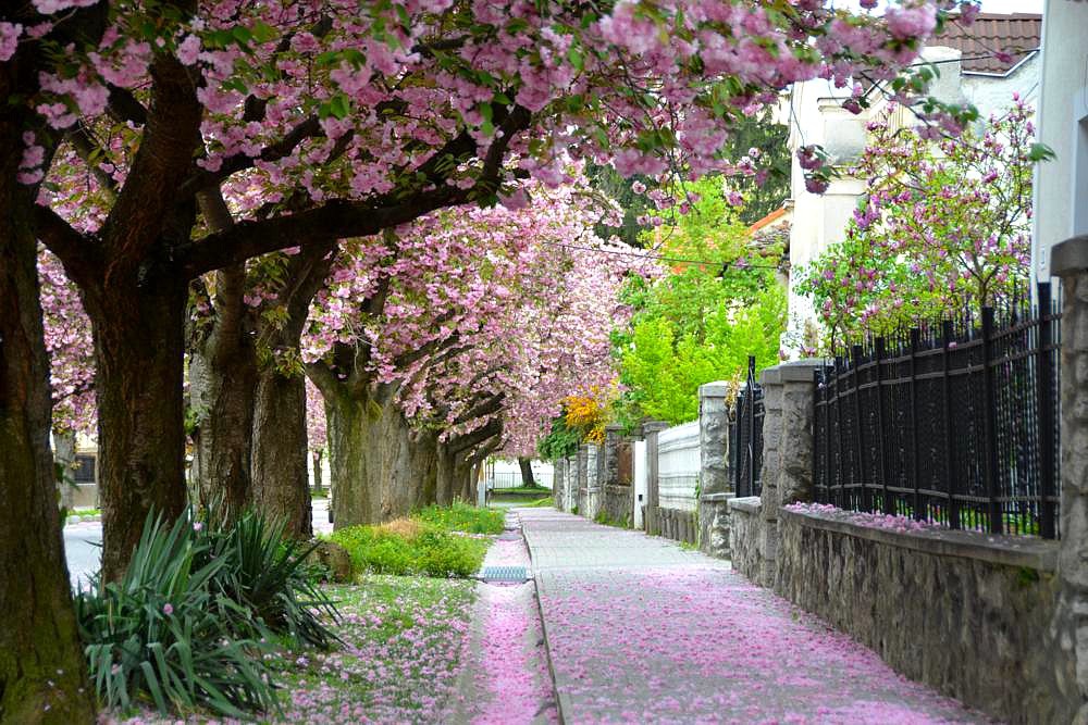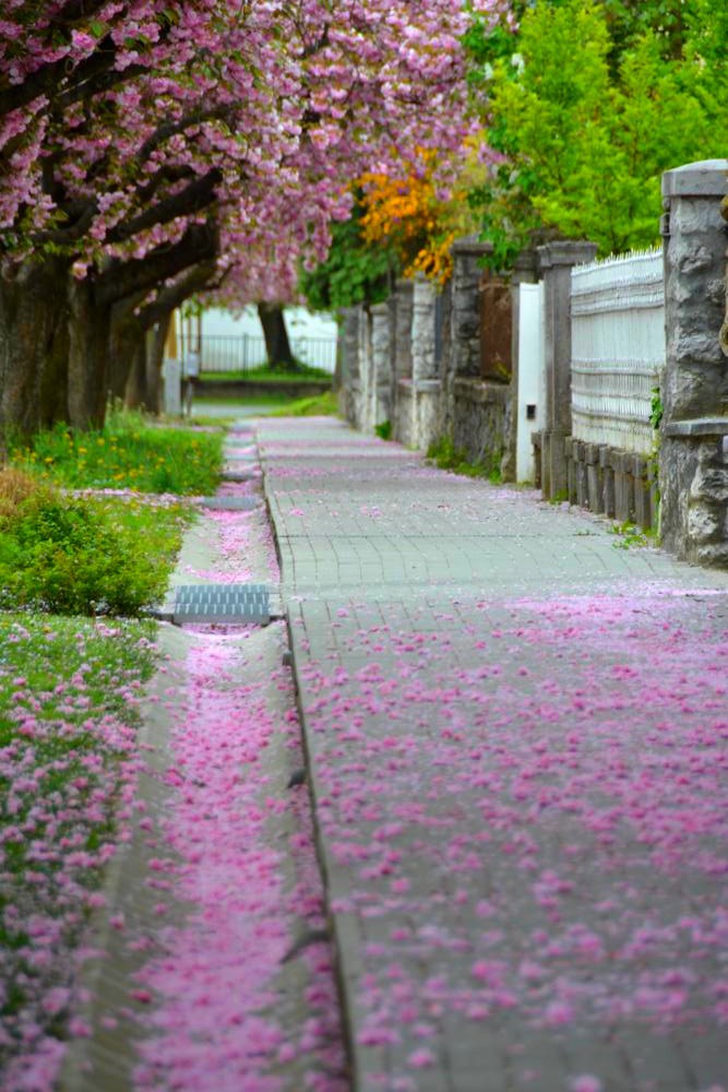 A kaposváriak és a fotósok egyik kedvenc témája tavasszal a Temesvár utca, amikor kinyílnak a japán cseresznyefák. Néhány hétig tart a rózsaszín csoda, azután lehullanak a szirmok, szinte szőnyeget alkotnak a járdán és az aszfalton. Németh Csilla küldött képeket a sziromhullásról.