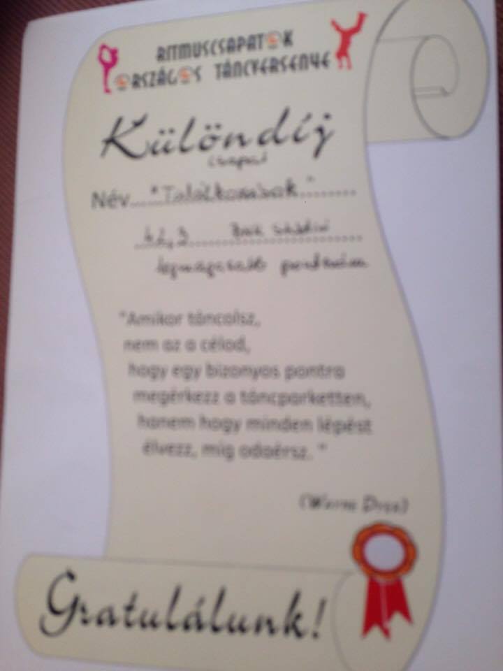 A legmagasabb pontszámot elért csapat különíját a Találkozások című produkció nyerte, míg a tanárok különdíját Bódis-Nagy Katinka!