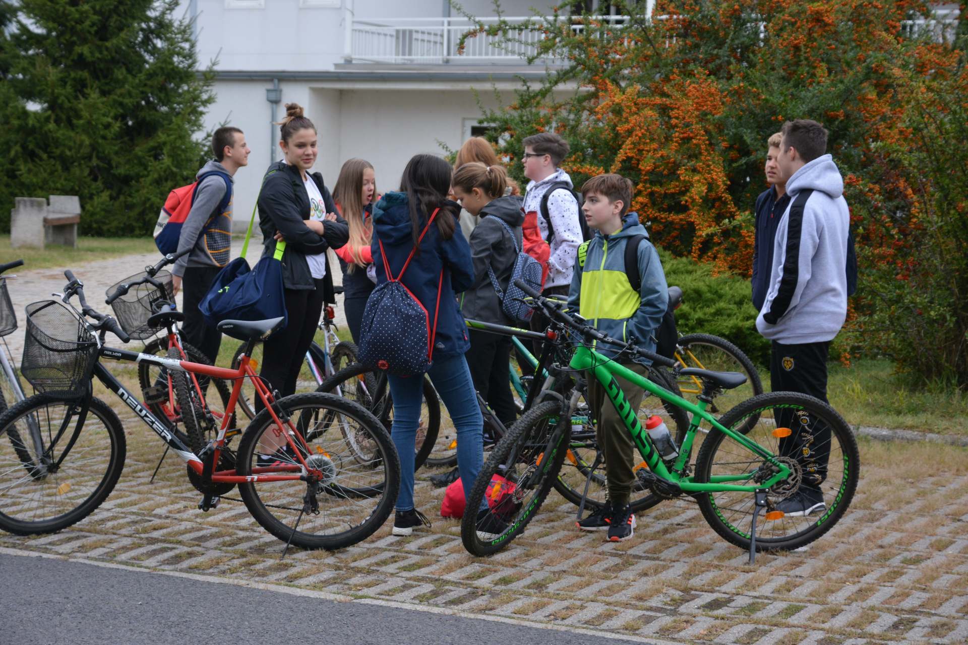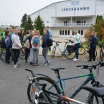 A felső tagozatos gyerekek és a tanáraik a nemzetközi autómentes napon együtt bicikliztek ki a Desedára, ahol különböző ügyességi és szellemi vetélkedőkkel várták őket.