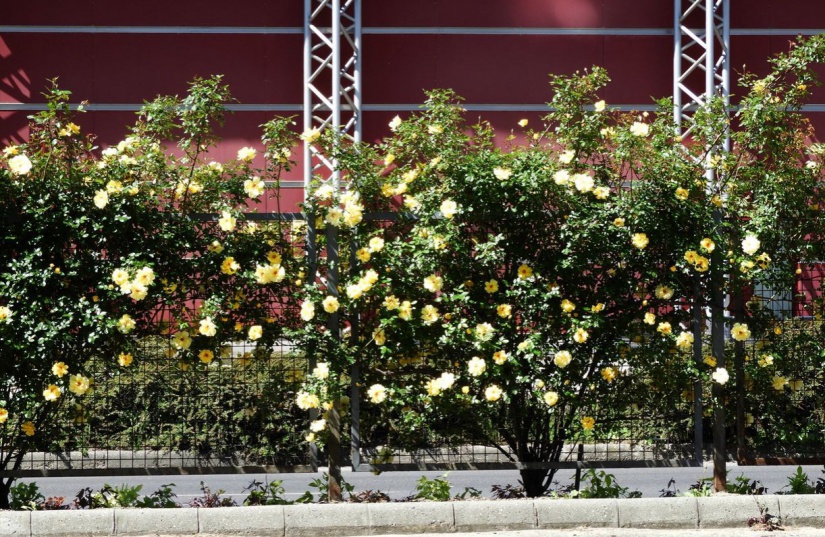 Nekem az abszolút kedvencem a Kaposvár Pláza előtti rész, ahol a négysávost elválasztó kerítést rózsákkal borítják be