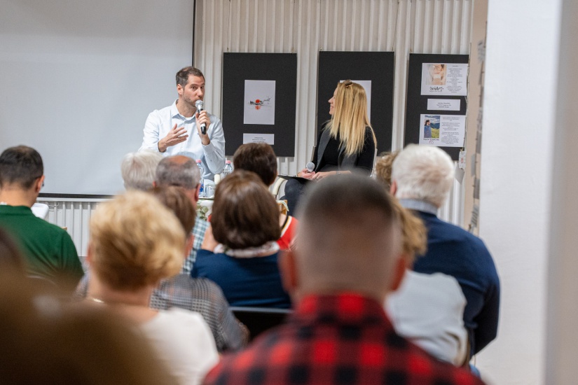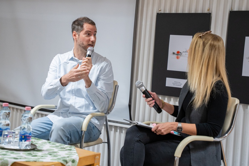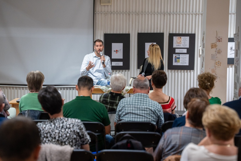 Beszélgetésünk előestéjén a Takáts Gyula Könyvtár adott otthont a kötet bemutatójának. A szerzőt Nagy Brigitta kérdezte. Benke Róbert fotói az eseményről: