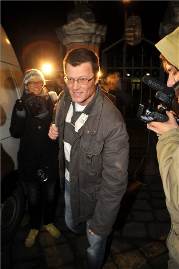 Az ismert színész, televíziós műsorvezető szabadulását több mint öt órán át több tévéstáb, fotós és újságíró várta a négy kijárattal is rendelkező Budapesti Fegyház és Börtön Kozma utcai épületének valamennyi kapujánál a fagypont alatti hőmérsékletben.