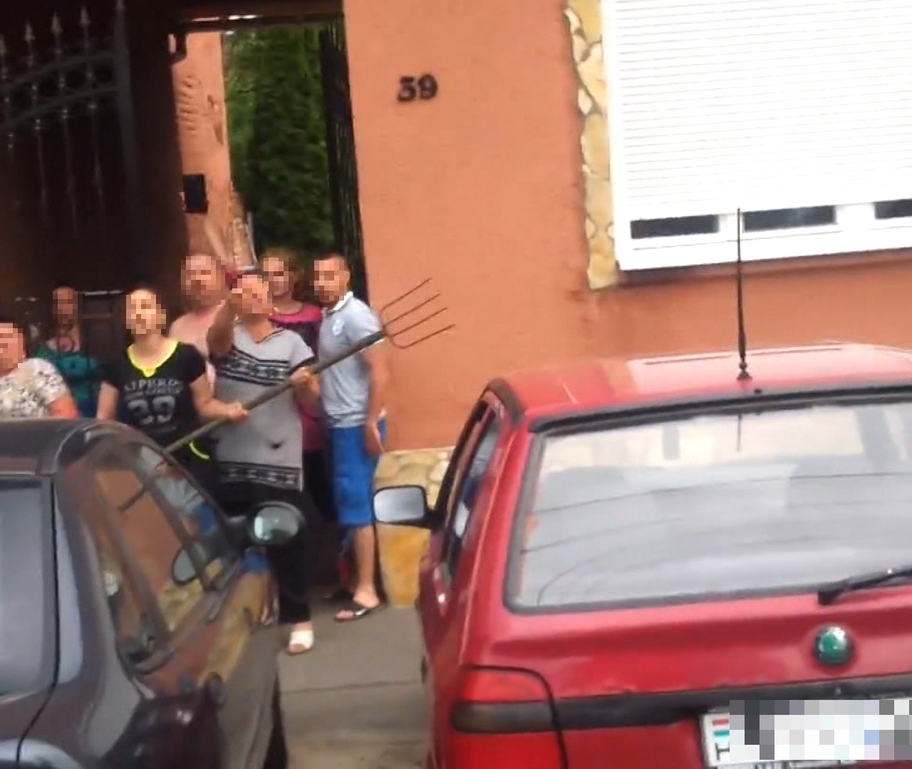 "Mutasd a vellát Laci!" - kiabálja valaki a videón, majd repül a sörösüveg a túloldalról. "Hozd ki a kardot, hallod?" - folytatja az illető.