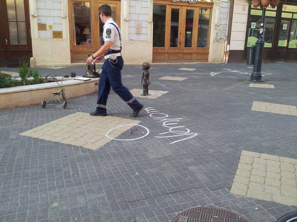 Sörös Rita Játszó kisgyermekek című alkotásának egy felelőtlen kerékpáros rongyolt neki kedden délután. Az egyik kisgyerek-szobor karja letört.