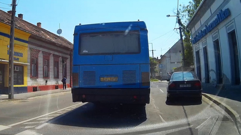 Szegény buszosnak nemcsak az aprócska donneri körforgalommal kell megküzdenie, de még a saját megállójába sem tud beállni.