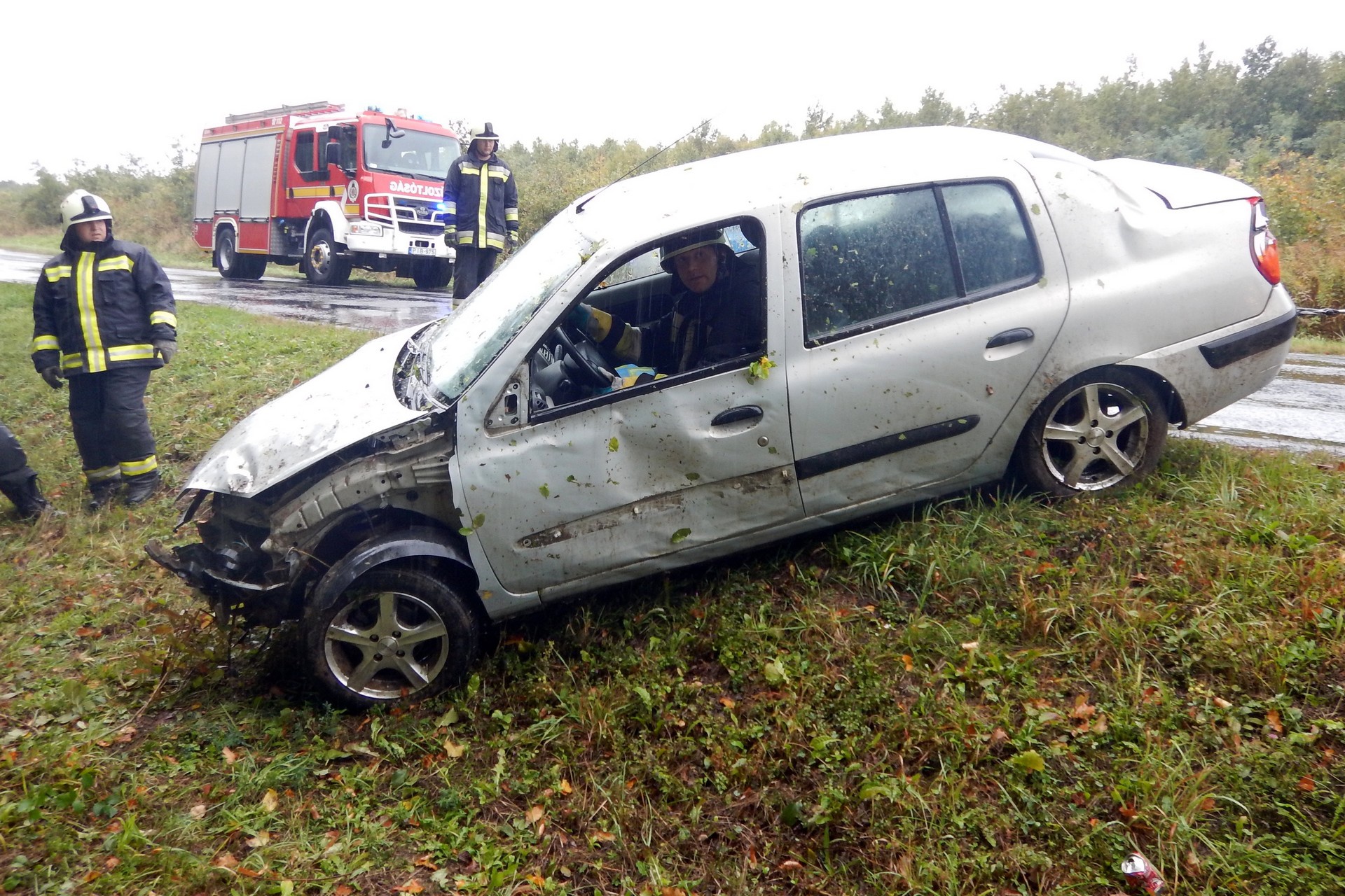 Csütörtökön délelőtt Marcali és Szőcsénypuszta között egy személyautó lesodródott az útról az árokba, majd onnan az erdőbe hajtott és az úttól mintegy tizenöt méterre az oldalára fordulva állt meg a fák között.
