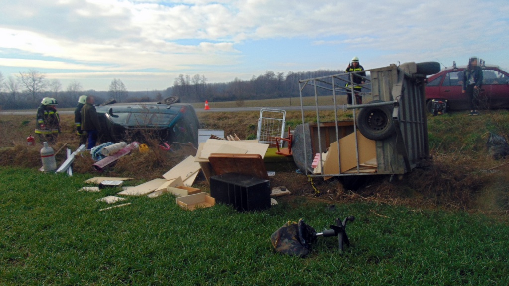 Az utánfutó főként bútorokból álló rakománya szétszóródott a helyszínen. A gépkocsi három utasa saját erejéből ki tudott szállni. A riasztott kadarkúti önkormányzati tűzoltók végezték a műszaki mentést. Az egység kerekeire állította a járművet, majd kivontatta az árokból.