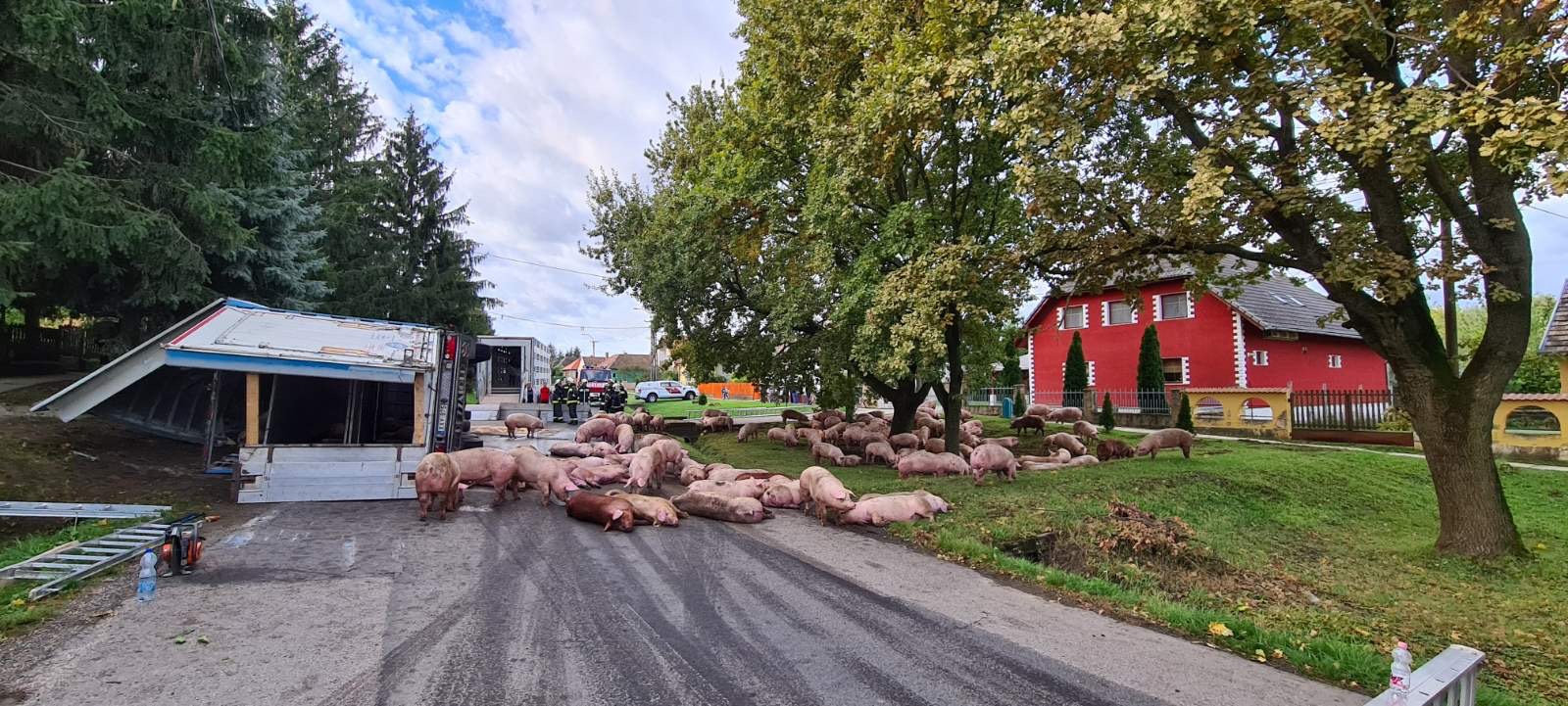 A szemtanúk szerint a kamion gyorsabban ment a megengedettnél, ezért borult fel. A sofőrt a helyi önkormányzati tűzoltók kiemelték a járműből. Az állatok egy része megsérült, a többiek viszont szabadon szaladgálnak a Szabadság utcában.