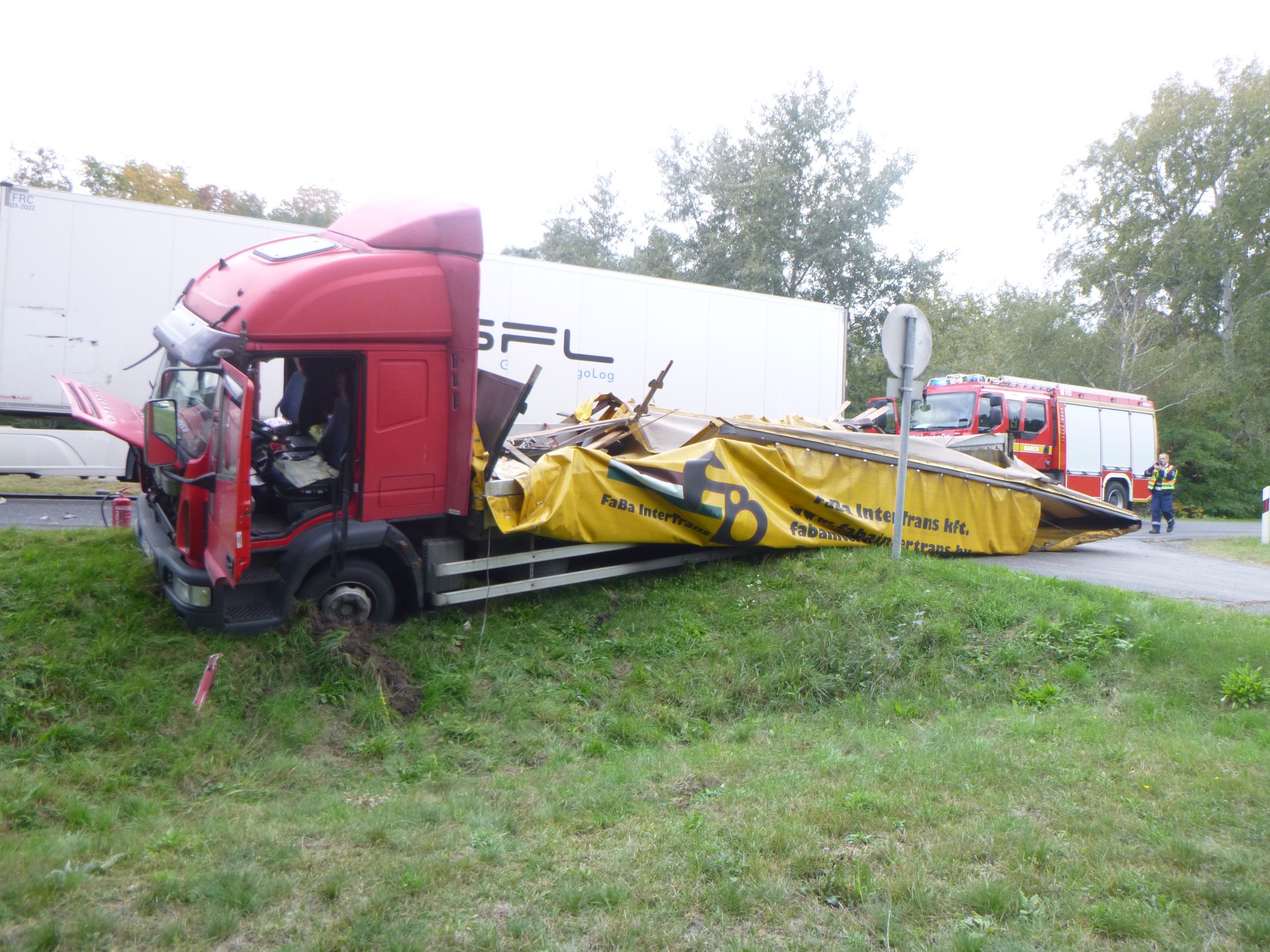 A 6-os főúton, Barcs és Darány között két teherautó karambolozott. Az ütközés miatt az egyik jármű az árokba hajtott. A barcsi hivatásos tűzoltók védősugár mellett áramtalanították a gépjárműveket és közreműködtek a forgalmi akadály megszüntetésében. A balesetben senki sem sérült meg.