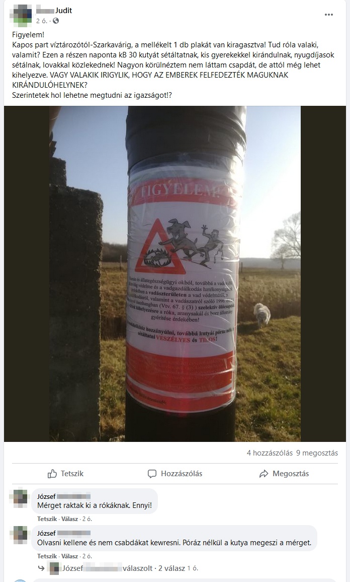 "Ezen a részen naponta kb. 30 kutyát sétáltatnak, kisgyerekekkel kirándulnak, nyugdíjasok sétálnak, lovakkal közlekednek. Nagyon körülnéztem, nem láttam csapdát, de attól még lehet kihelyezve." - írja a kép mellé a feltöltő.