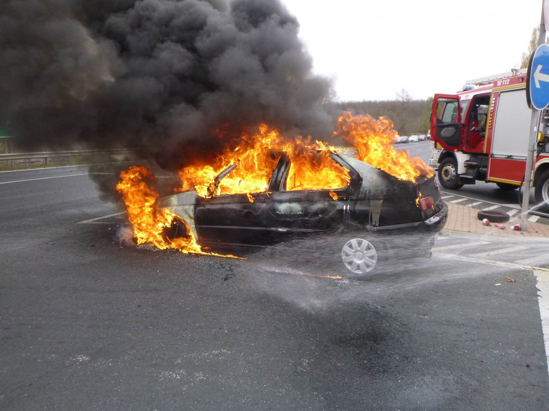 Kigyulladt és teljes terjedelmében égett egy személygépkocsi szombat délután a 68-as főút 93-as kilométerénél, Balatonújlak térségében. Az esethez a marcali hivatásos tűzoltókat riasztották, akik két vízsugárral eloltották a tüzet.