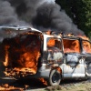 Árokba sodródott, felborult és kigyulladt egy kisbusz hétfő délután Gige határában. A rendőrök a civilek segítségével négy embert mentettek ki a felhevült utastérből.