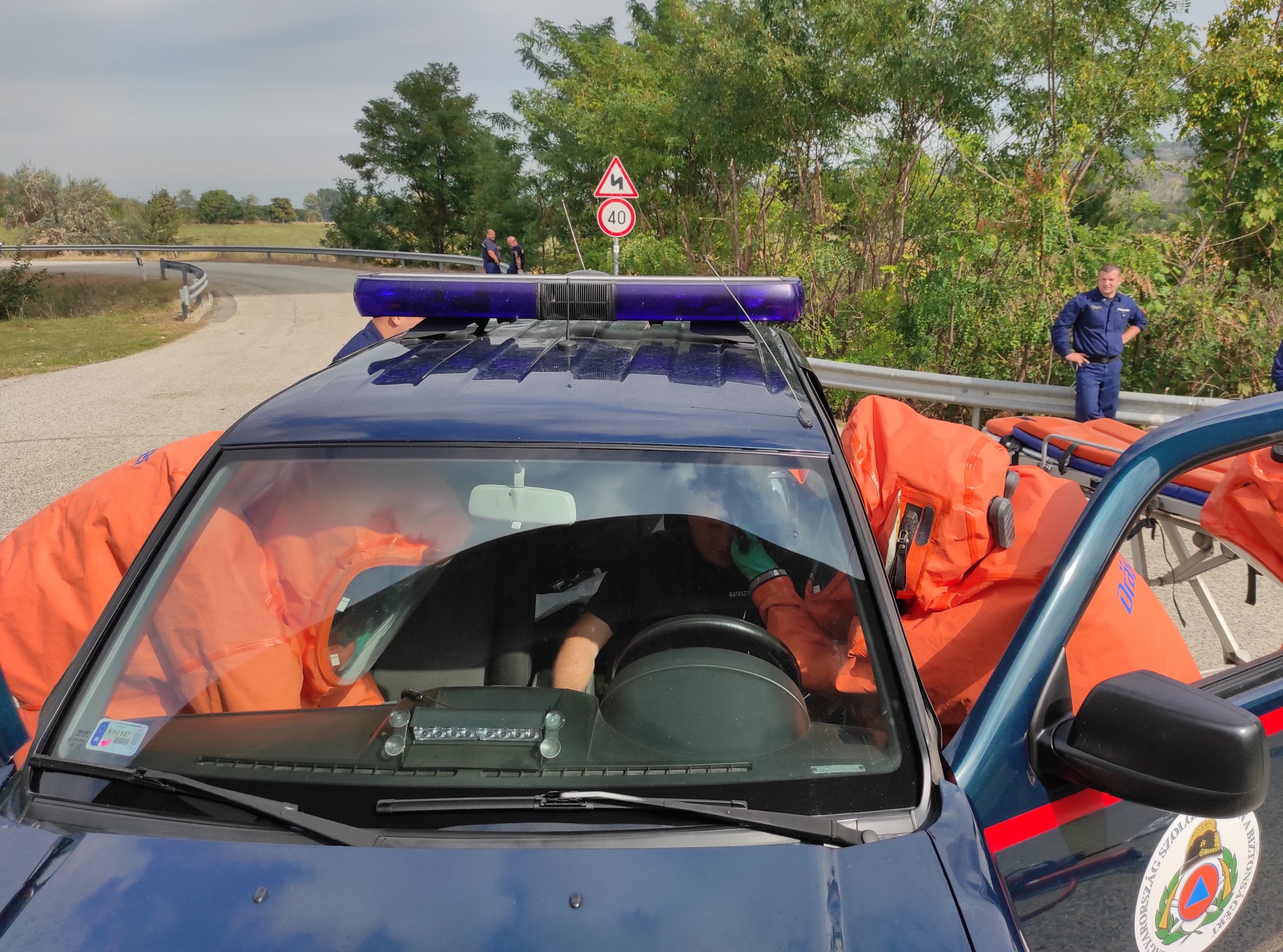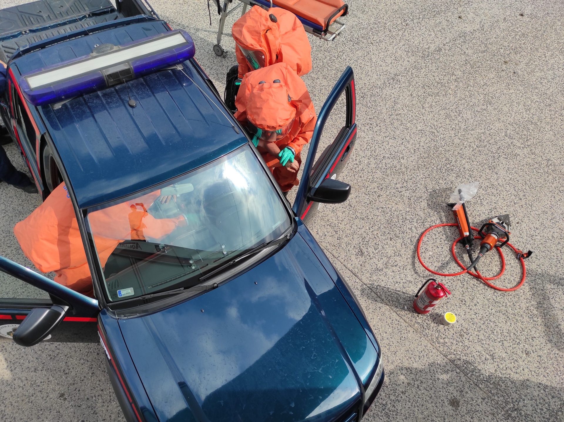 A feladat szerint egy veszélyes anyagot szállító teherautó és egy terepjáró karambolozott. Nem csak a sérülteket kellett kimenteni, hanem a mérgező anyag szivárgását is meg kellett állítaniuk.