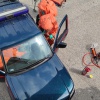 Ezt követte a gyakorlati rész, melynek feltételezése szerint egy veszélyes anyagot szállító teherautó és egy terepjáró ütközött össze a kőröshegyi Völgyhíd lábánál. A tartály megsérült, a veszélyes anyag a szabadba jutott, mindkét jármű vezetője megsérült.